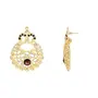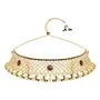 The gold-plated choker necklace set consists of a necklace a pair of earrings and a maang tikka. The necklace features kundan studded with pearl beaded in it giving it an elegant and traditional look. The stones and pearls are set in a beautiful pattern adding a touch of sophistication and grace to the necklace. The necklace is secured with drawstring closures which make it easy to adjust the size to fit comfortably around the neck. This is an important feature as it ensures that the necklace will be comfortable to wear for extended periods of time. The necklace is secured with drawstring closures which make it easy to adjust the size to fit comfortably around the neck. This is an important feature as it ensures that the necklace will be comfortable to wear for extended periods of time. The earrings and maang tikka are also adorned with stones and pearls which match the pattern of the necklace. The earrings have a beautiful design which makes them easy and comfortable to wear. The maang tikka is a traditional Indian hair accessory that can be worn with the necklace and earrings to complete the look.