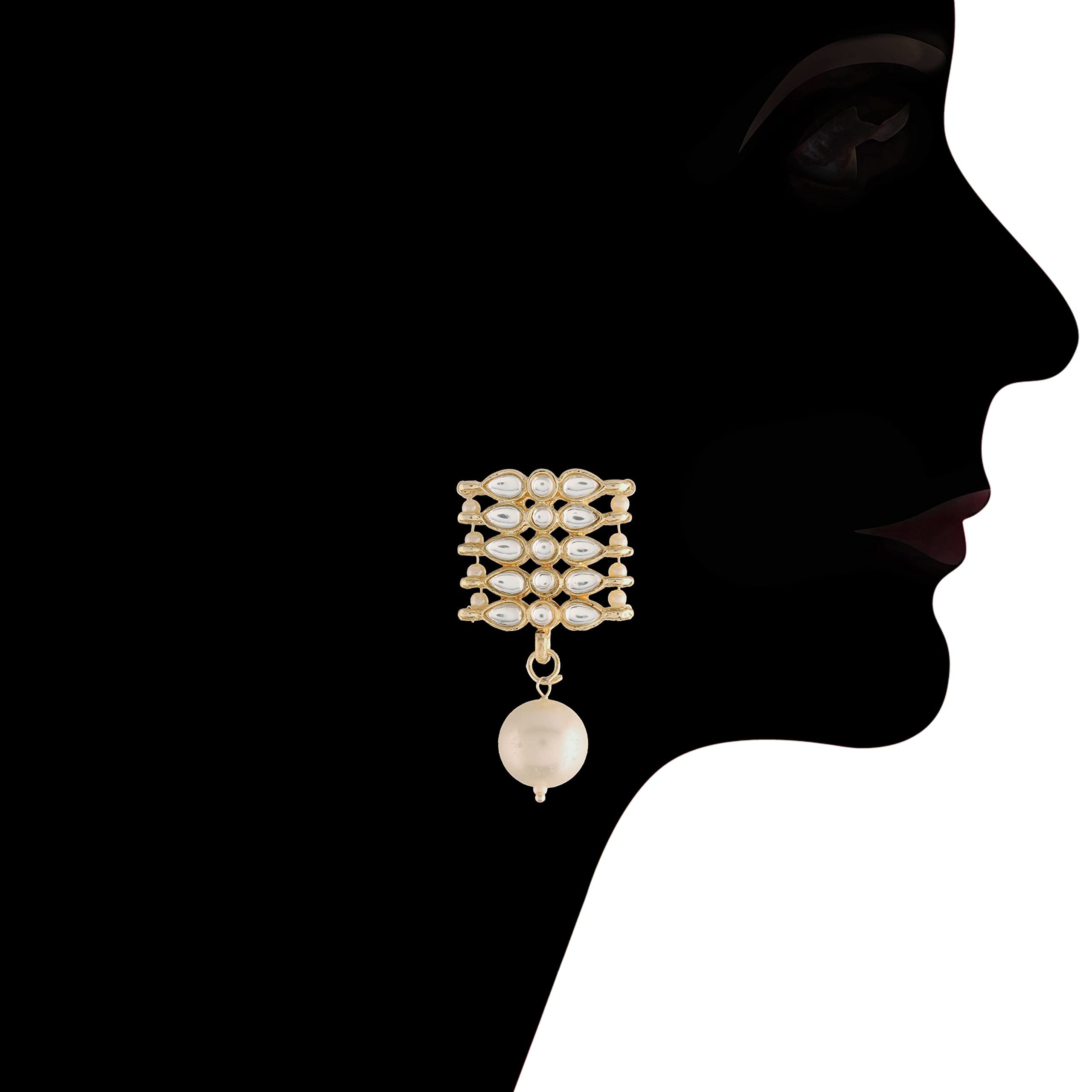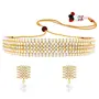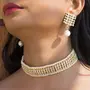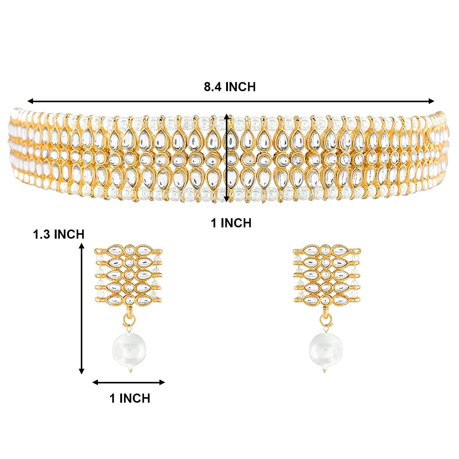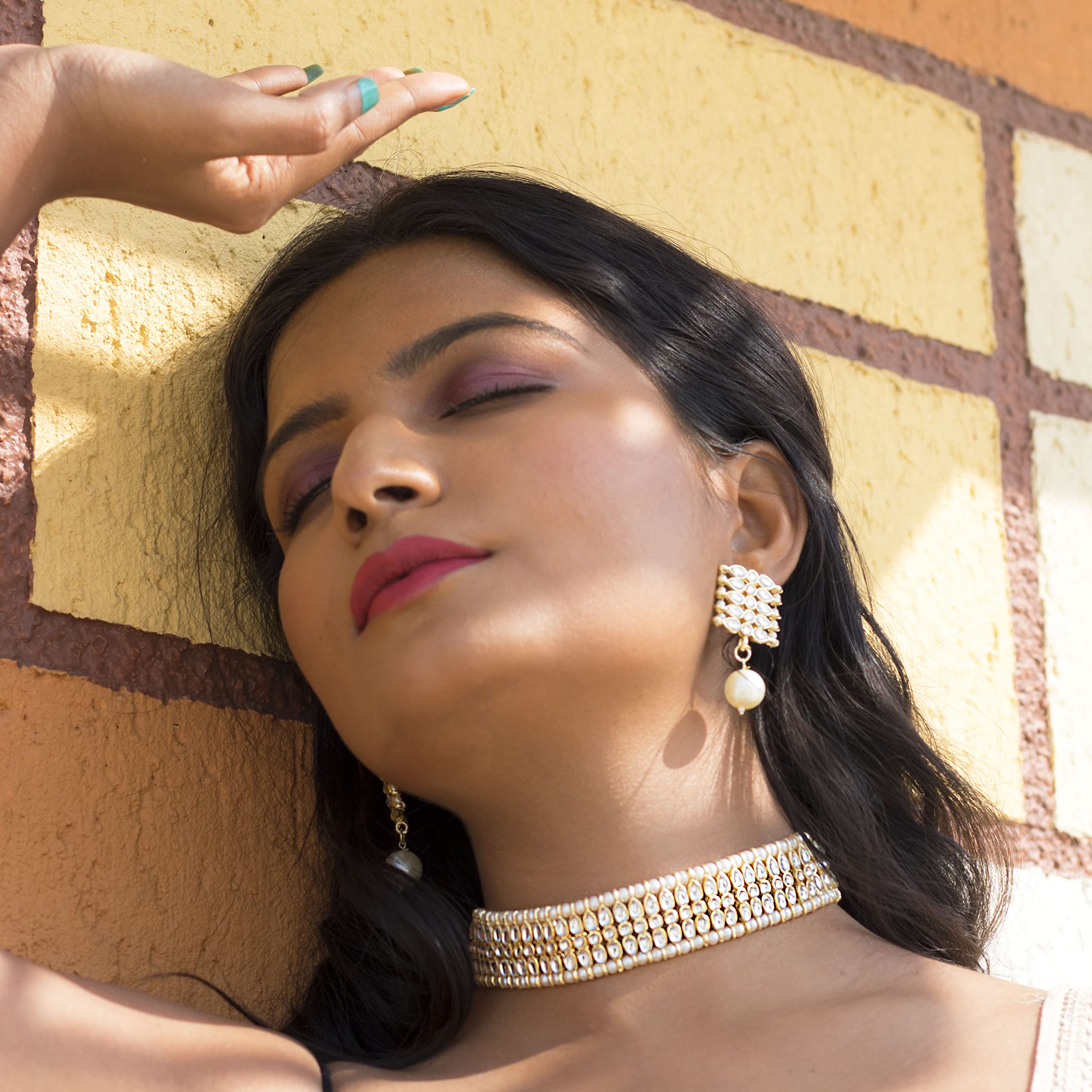 This jewellery set is crafted in 18K gold plated traditional light weight Pearl choker set glided with Kundan work. The necklace feature Pearl & Kundan work in it and is secured with a drawstring closures. Style this necklace set with a saree or a salwar suit to enhance the look.