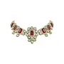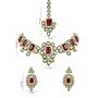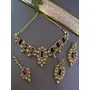 This choker necklace earrings and Maang Tikka set epitomizes traditional Indian jewelry craftsmanship at its finest. It's a nod to the timeless charm of Kundan and stone-studded designs that have been cherished for generations. The centerpiece of this set is the intricate Kundan work. Carefully selected Kundan stones are arranged in an elegant pattern surrounded by smaller hand-set stones that add a dazzling brilliance. The intricate details reflect the artistry of traditional Indian jewelry design. Whether it's your wedding day a festival or a special gathering this set is designed to make you stand out. It's a perfect choice for any traditional event radiating elegance and opulence.