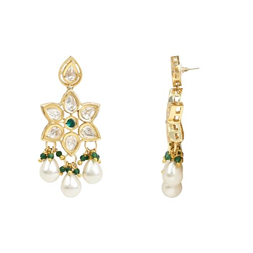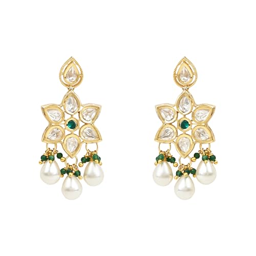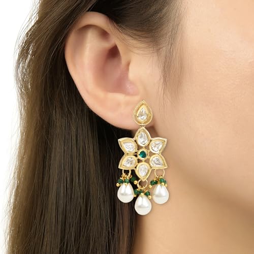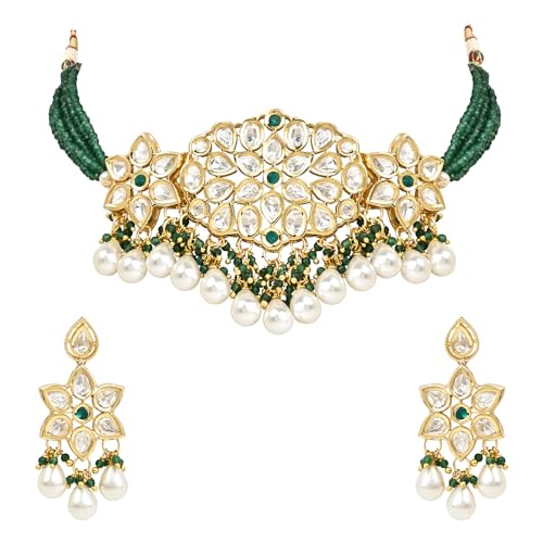 I Jewels Gold Plated Indian Wedding Bollywood Kundan Pearl Choker Necklace Jewellery With Dangle Earrings Set For Women/Girls (ML334G)