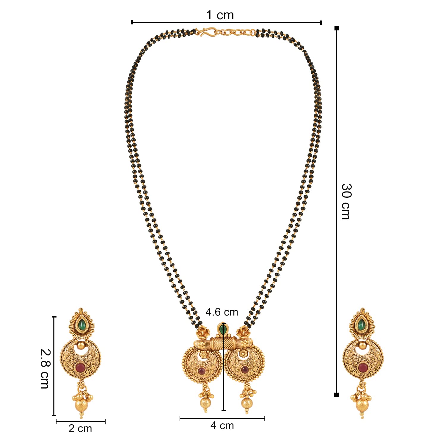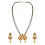 With Jhumki Earrings Set For Women is a beautiful and elegant piece of jewelry that is perfect for special occasions or everyday wear. The mangalsutra features a classic design with a gold plated brass pendant that is adorned with black pearls adding a touch of sophistication and elegance to the piece.The long black bead chain of the mangalsutra is beaded with small pearls which are believed to have protective and auspicious properties in Indian culture making this mangalsutra a meaningful and symbolic piece of jewelry. The earrings in the set are jhumki style featuring intricate gold plated brass work with black pearls that perfectly complement the mangalsutra.This set is perfect for women who appreciate the beauty of traditional Indian jewelry with a modern twist.