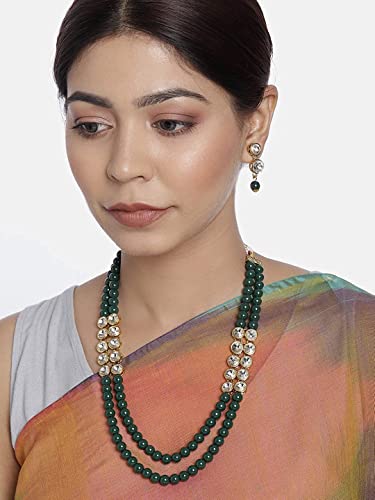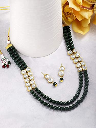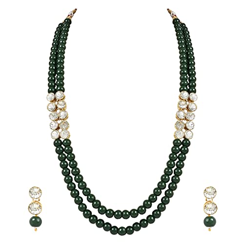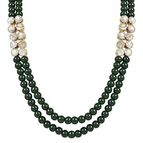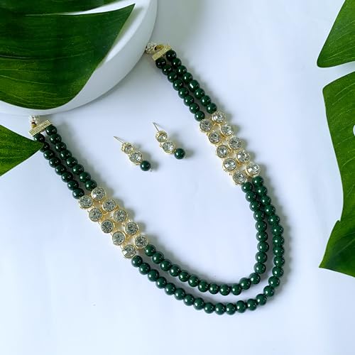 I Jewels Gold Plated Indian Wedding Bollywood Stunning White Stone Layered Pearl Necklace Jewellery Set with Earrings For Women