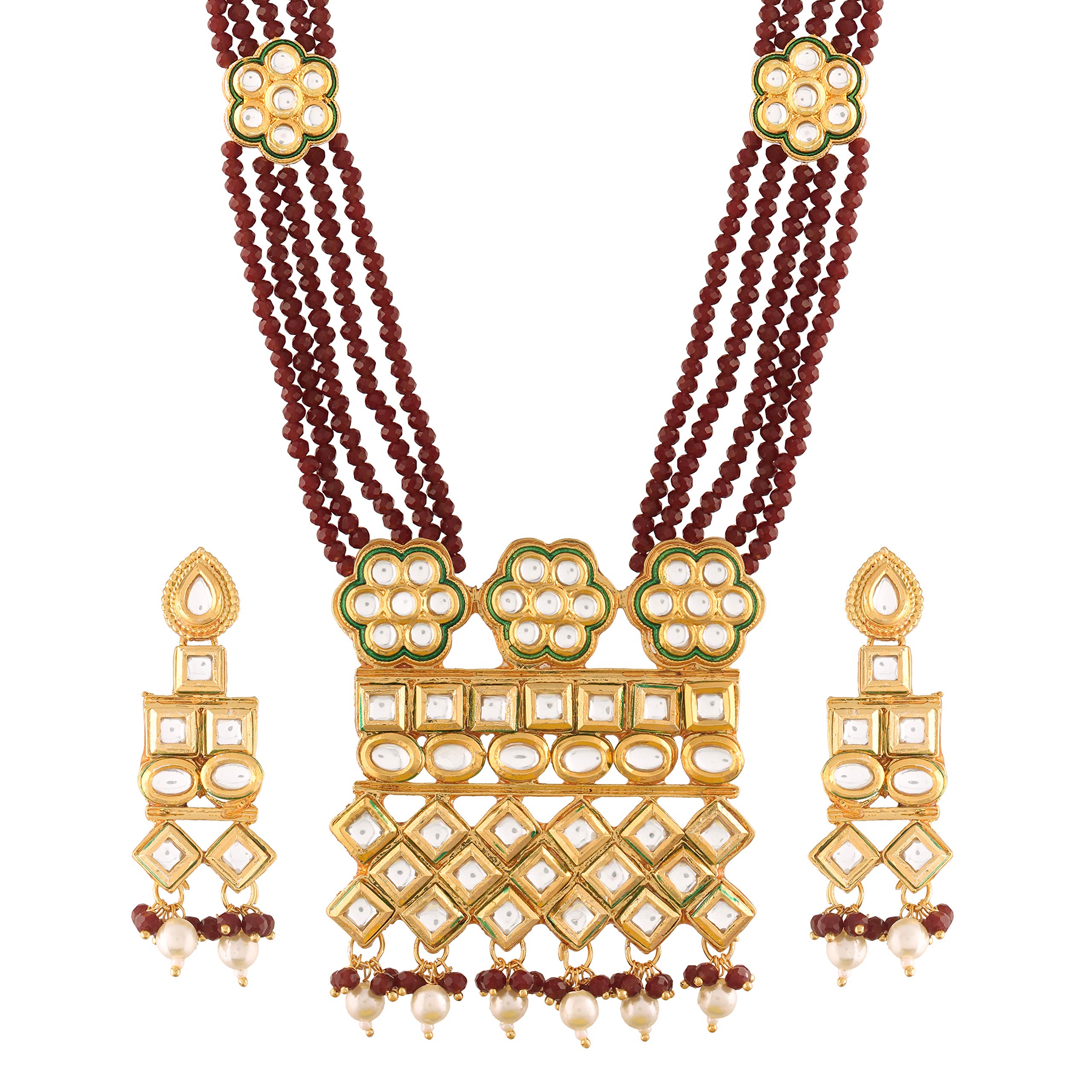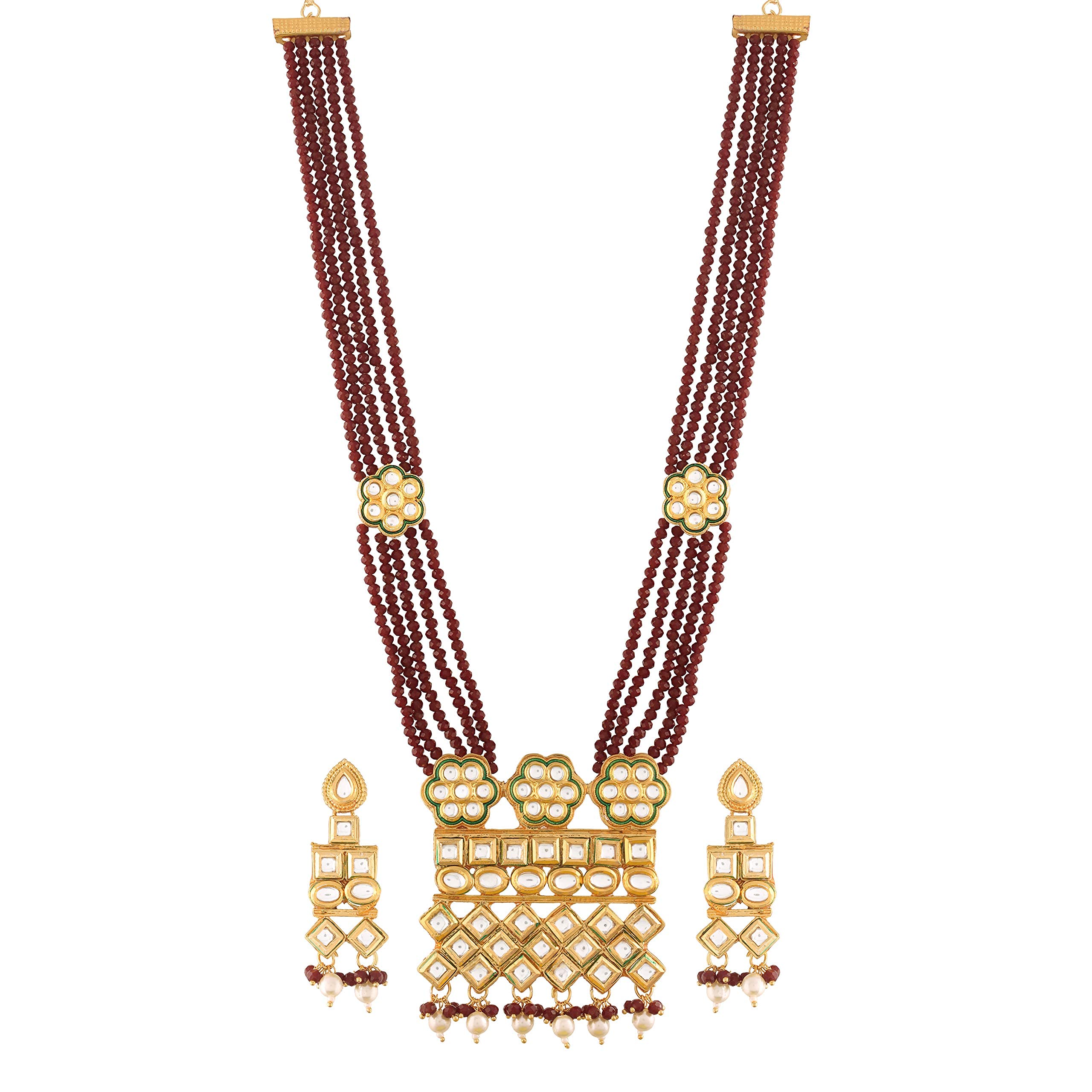 HomeFashionNecklaceI Jewels Gold Plated Indian Wedding Bollywood Uncut Polki Kundan Multi Strand Brass Necklace Jewelry Set With Earrings for Women (ML252)