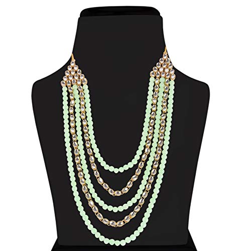 I Jewels Gold Plated Kundan & Beads Multi-Strand Necklace Set with Earrings For Women (IJ318)