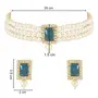 DIMENSIONS: Necklace Length - 26 cm x Width - 1.5 cm Earring Height - 3.5 cm x Width - 2 cm Weight - 65 gms. This stunning choker necklace is a delicate masterpiece that graces the neck with its intricate design. Adorned with carefully chosen stones and lustrous pearls it effortlessly combines traditional allure with a modern aesthetic. The gold-plated links elegantly embrace the neck reflecting a blend of heritage and contemporary elegance. The stone work on the necklace adds a captivating sparkle enhancing its overall allure. Adjust the length of the necklace to suit your preference and outfit ensuring a comfortable and perfect fit. Whether you're attending a wedding a festive celebration or a traditional gathering this versatile jewellery set complements a variety of ensembles. It arrives elegantly packaged making it an ideal gift for yourself or a loved one.