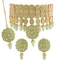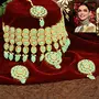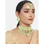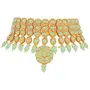 This jewellery set is crafted in gold plating and consists of a necklace maang tikka and a pair of earrings. The choker necklace feature beads & pearls-studded in it and is secured with a drawstring closures. Style this necklace set with a saree or a salwar suit to enhance the look.