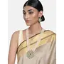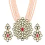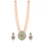 This jewellery set is crafted in gold plated traditional light weight beaded mala handcrafted with uncut kundan. The necklace feature emerald green onyx stone beads work in it and is secured with a drawstring closures. Style this necklace set with a saree or a salwar suit to enhance the look.