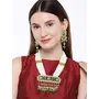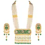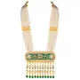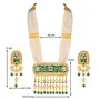 I Jewels Traditional Gold Plated Kundan Pearl Multi Layered Mint Meena Work Long Necklace & Earrings Set For Women