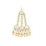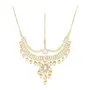 Celebrate your special day with the splendor of this radiant Gold-Plated Kundan Dulhan Bridal Jewellery Set. This opulent collection comprises a captivating long necklace an intricately designed choker and a pair of exquisite earrings. Completing the regal look the set includes a beautifully embellished nath (nose ring) a graceful passa (side headpiece) an alluring mathapatti (forehead ornament) and a pair of dainty panja (hand harness).The choker necklace adorned with glistening kundan and pearls exudes a captivating allure that perfectly complements any saree or lehenga enhancing your overall bridal appearance.Let this traditional bridal jewelry combo necklace set be the crowning jewel of your wedding ensemble reflecting your inner radiance and grace. Make your big day even more memorable with this stunning masterpiece that symbolizes eternal love and sophistication."