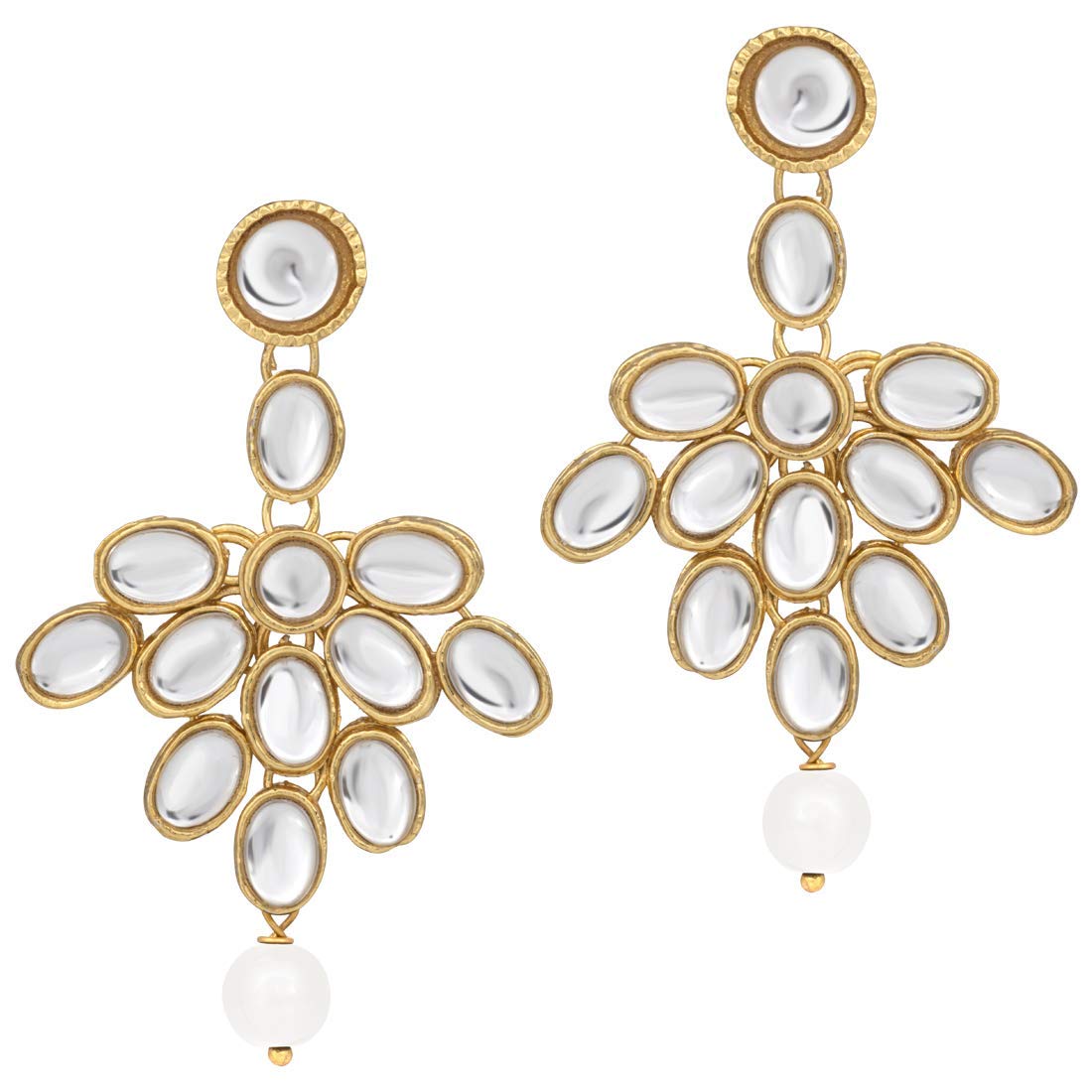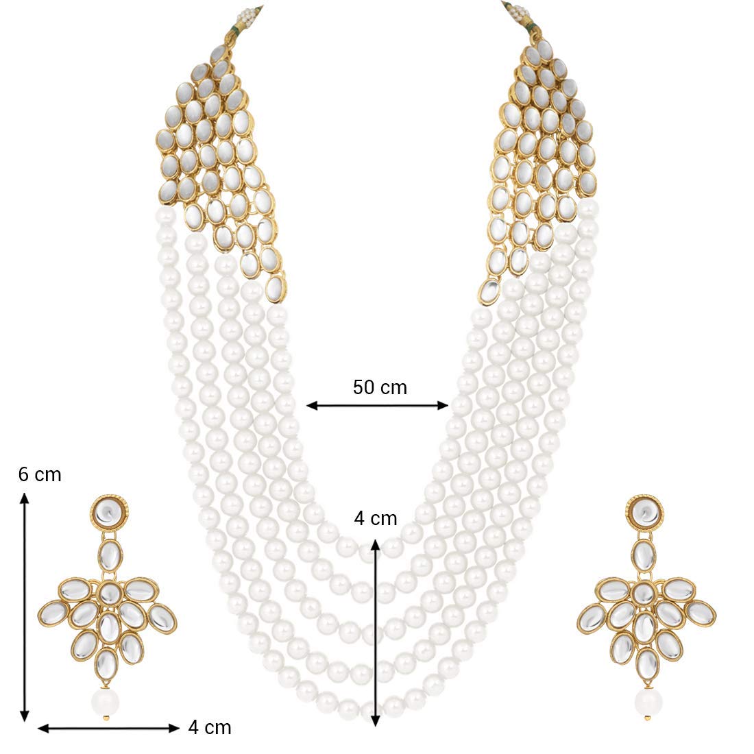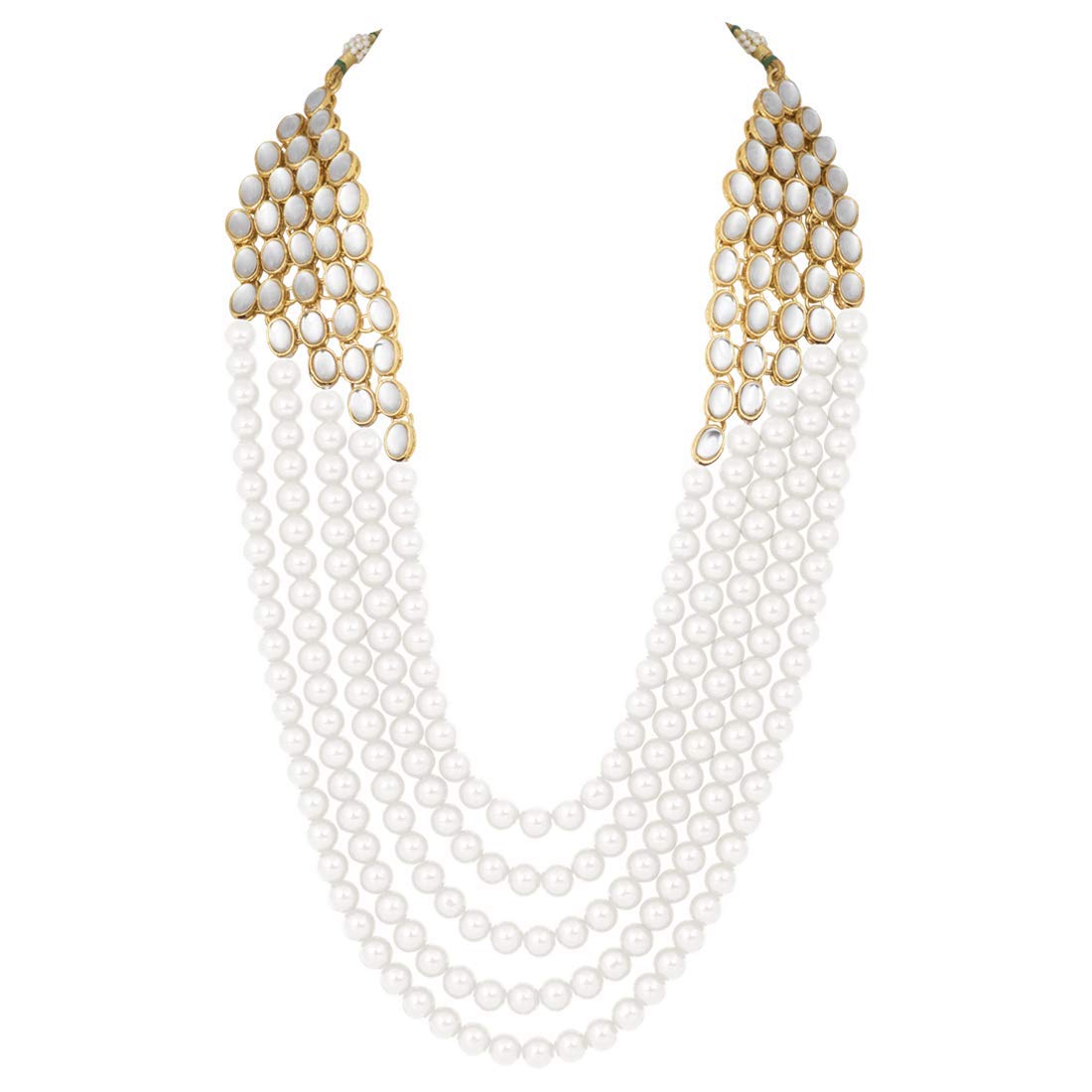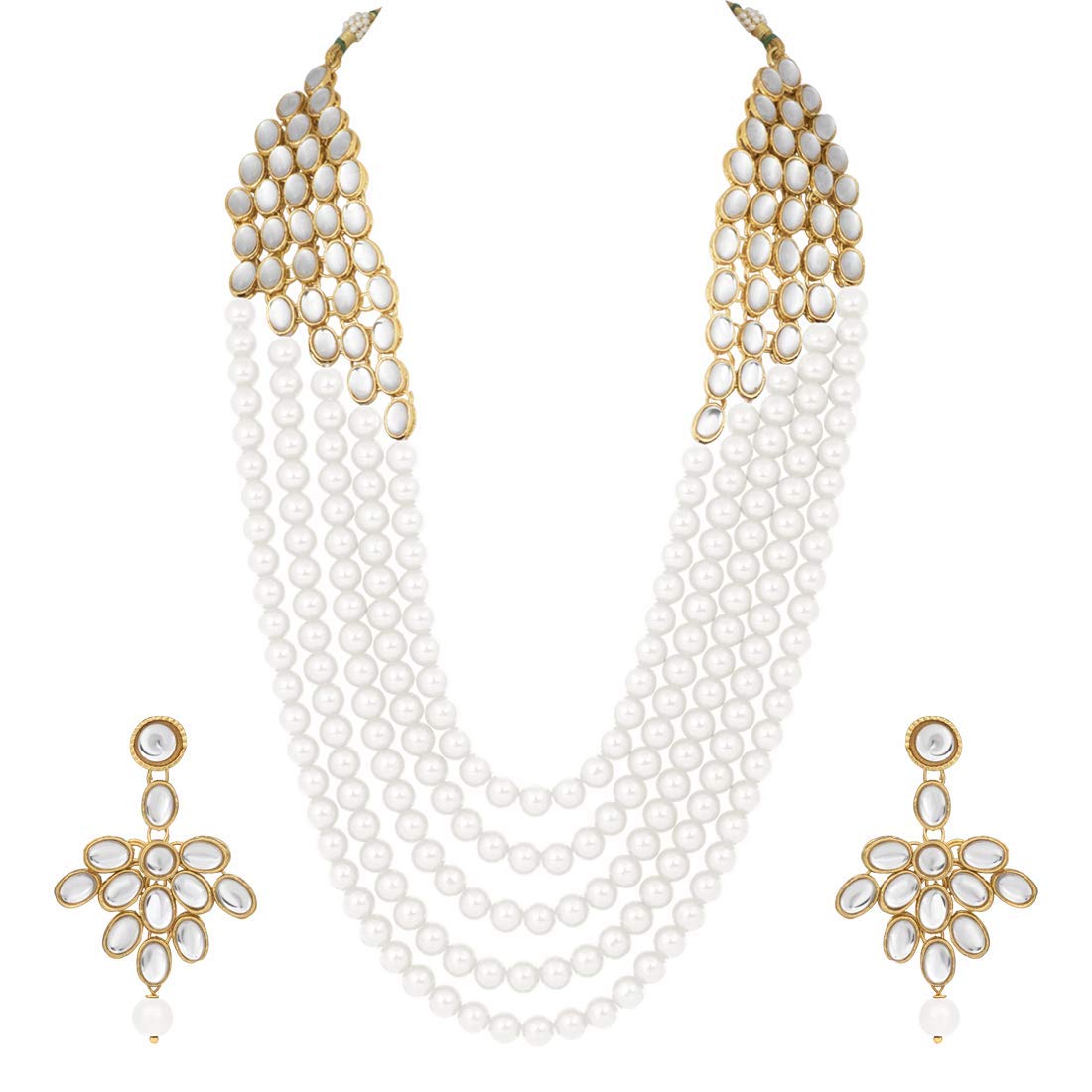 HomeFashionNecklaceI Jewels Wedding Collection White 5 Layer Faux Mother-of-Pearl and Kundan Rani Stylish Party Wear Jewelry Set with Earrings for Women