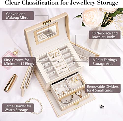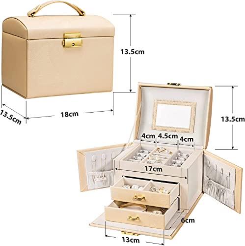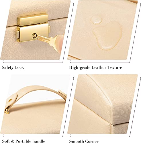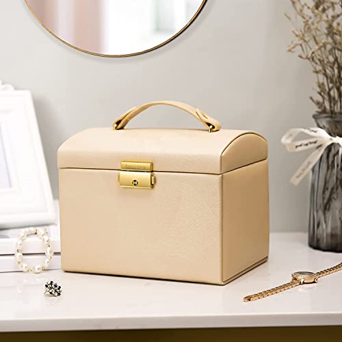 HomeFashionNecklaceJewellery Organiser MultiLayer PU Leather Portable Lockable Jewelry Box Case with Dividers Container for Rings, Earrings, Necklace Home Organizer, Beige, Onesize, Faux Leather