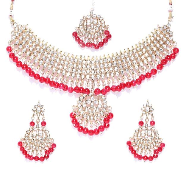 Jewellery Sets for Women Gold Plated Kundan Bridal Necklace Jewellery Set with Earrings for Girls/Women
