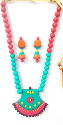 Handmade Terracotta Neck Sets uses ethnic designs and vivid colours. It is immensely popular in the fashion industry