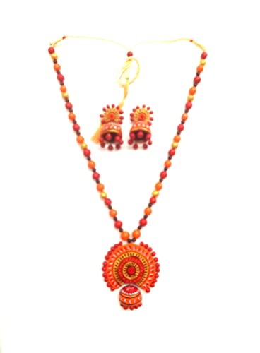 100% handmade terracotta lightweight hand painted jewellery set for women. This jewellery set is perfect for any occasion like party wedding casual office outdoor travel function etc. Acrylic paint of this jewellery avoids fading. Made up of natural clay makes it eco friendly . This jewellery is perfectly designed to match with traditional Indian wear.