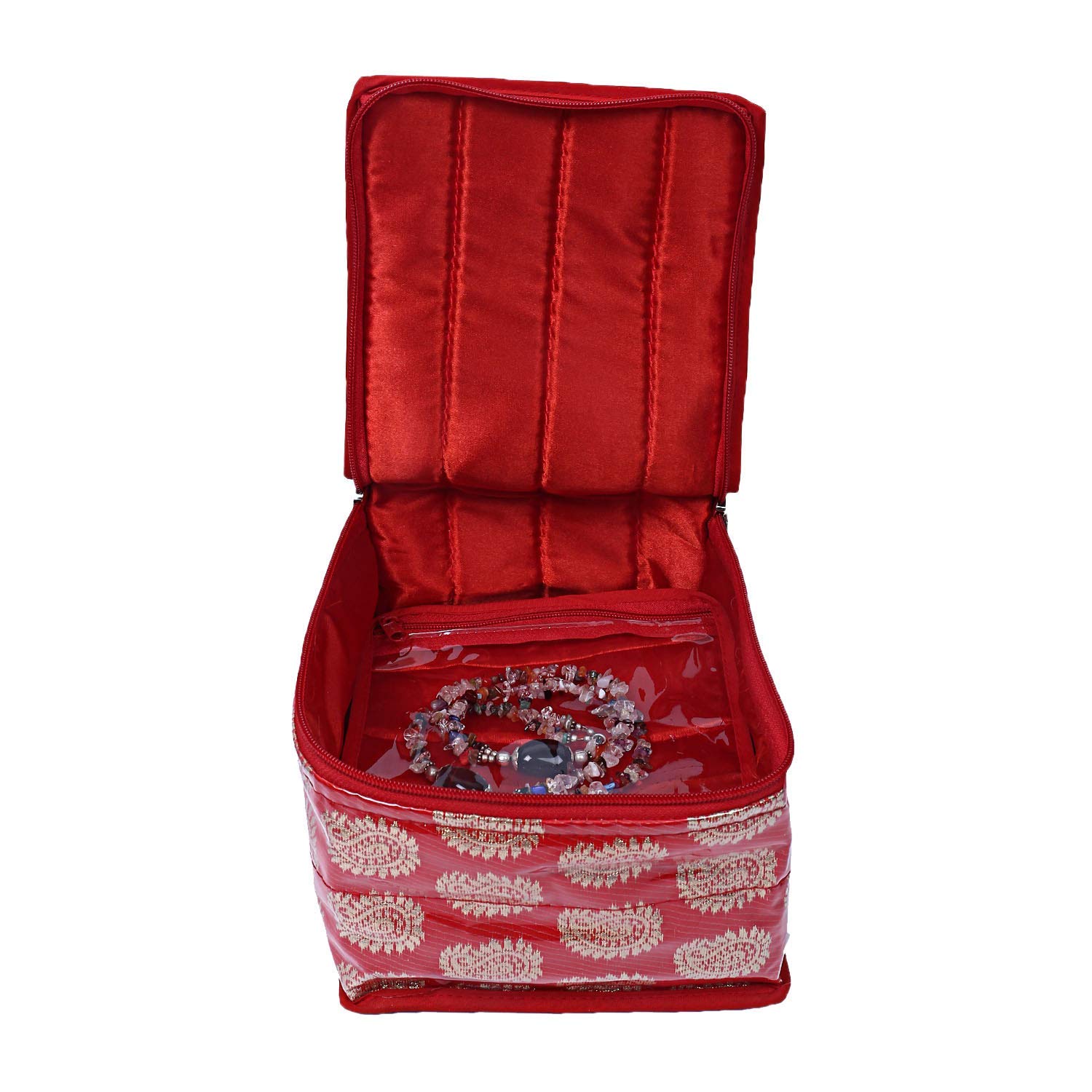 Kuber Industries Jewellery organizer helps organize your costly and favorite Jewellery while travelling or at home. 10 transparent pouches store & multi pockets can store your earringsPendantsNecklaceBracelet Ring WatchesChainsPearl JewelleryAccessoryHead ropeHeadband or nail polish cuffs makeup brushes Eye shadow etc. It give you the convenience to separately store your Jewellery as per your need. It can also be used for gifting trousseau packing in your wardrobe bank lockers etc.