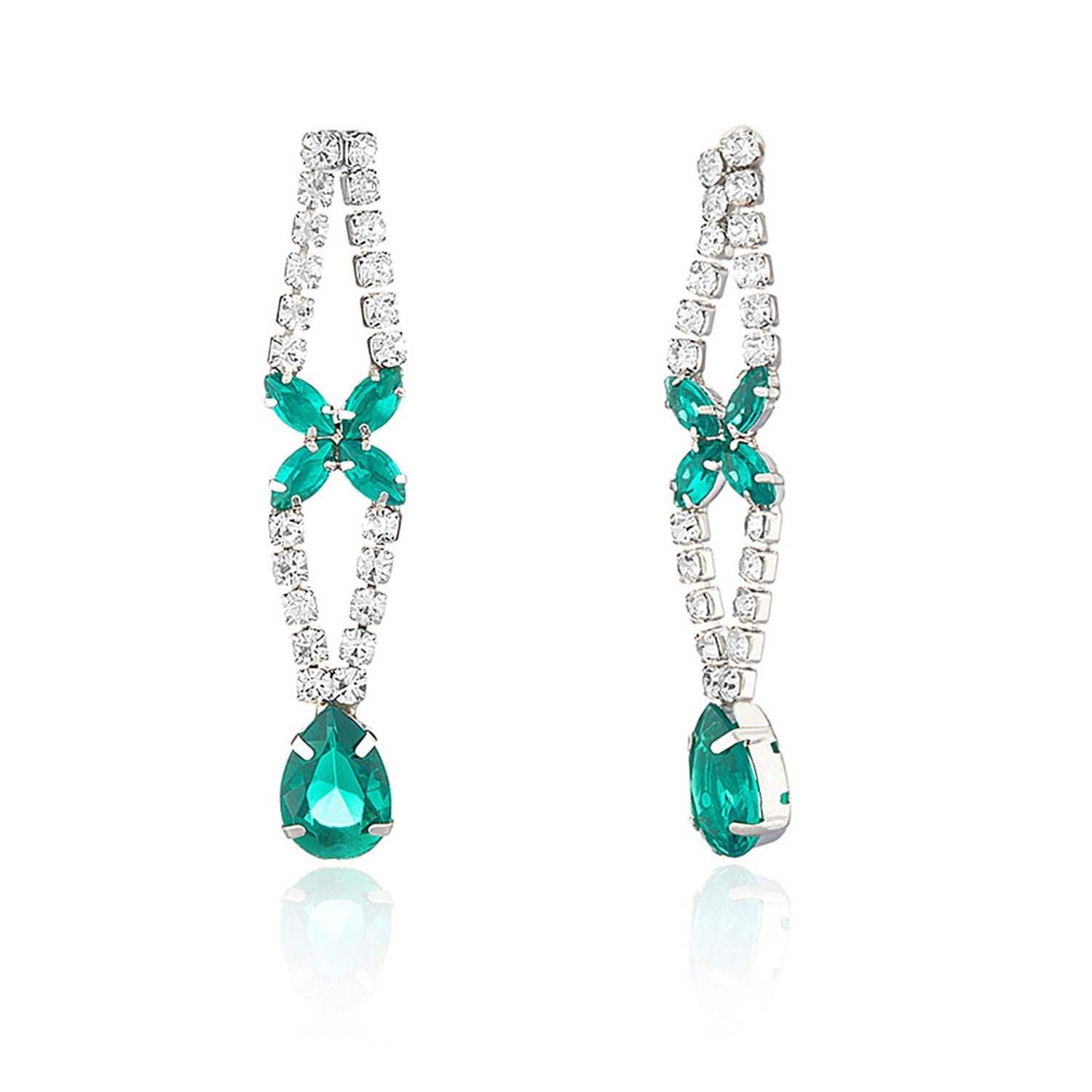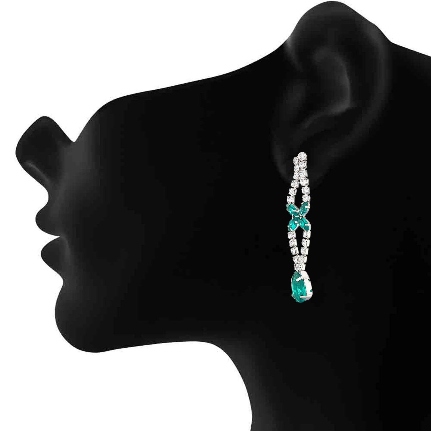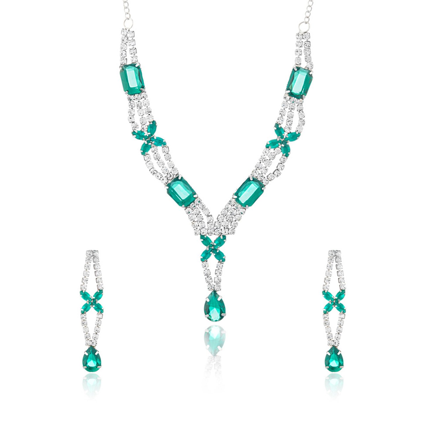 Mahi Rhodium Plated Asscher Necklace Set of Alloy Brass with Green Austrian Crystals for Women NL4101011Gre