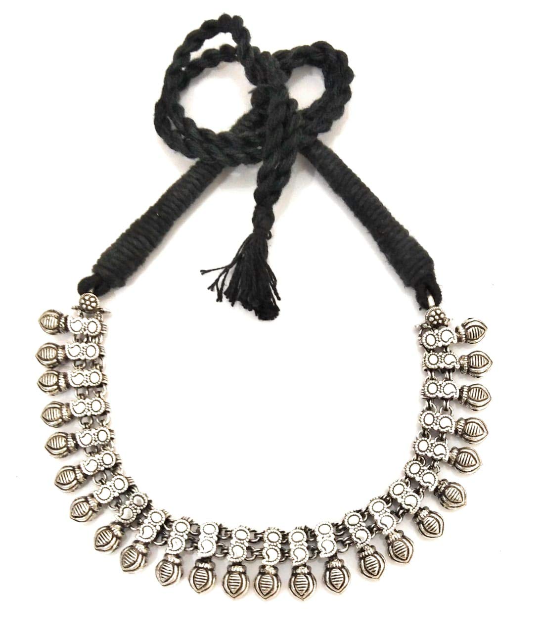 Extremely beautiful handmade tribal black thread necklace with Long Metal Beads Embellishments thread jewelry 14 Inches long choker necklace Adds beauty over time Premium gift for women & girls Export quality metal and finish offbeat necklace to adore Be beautiful Be hep Be different Be assured for the quality with athizay.