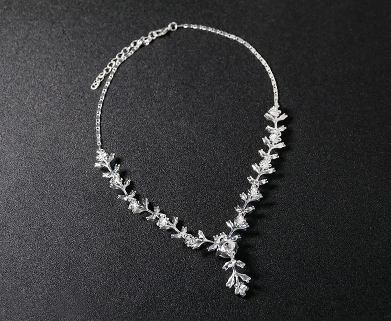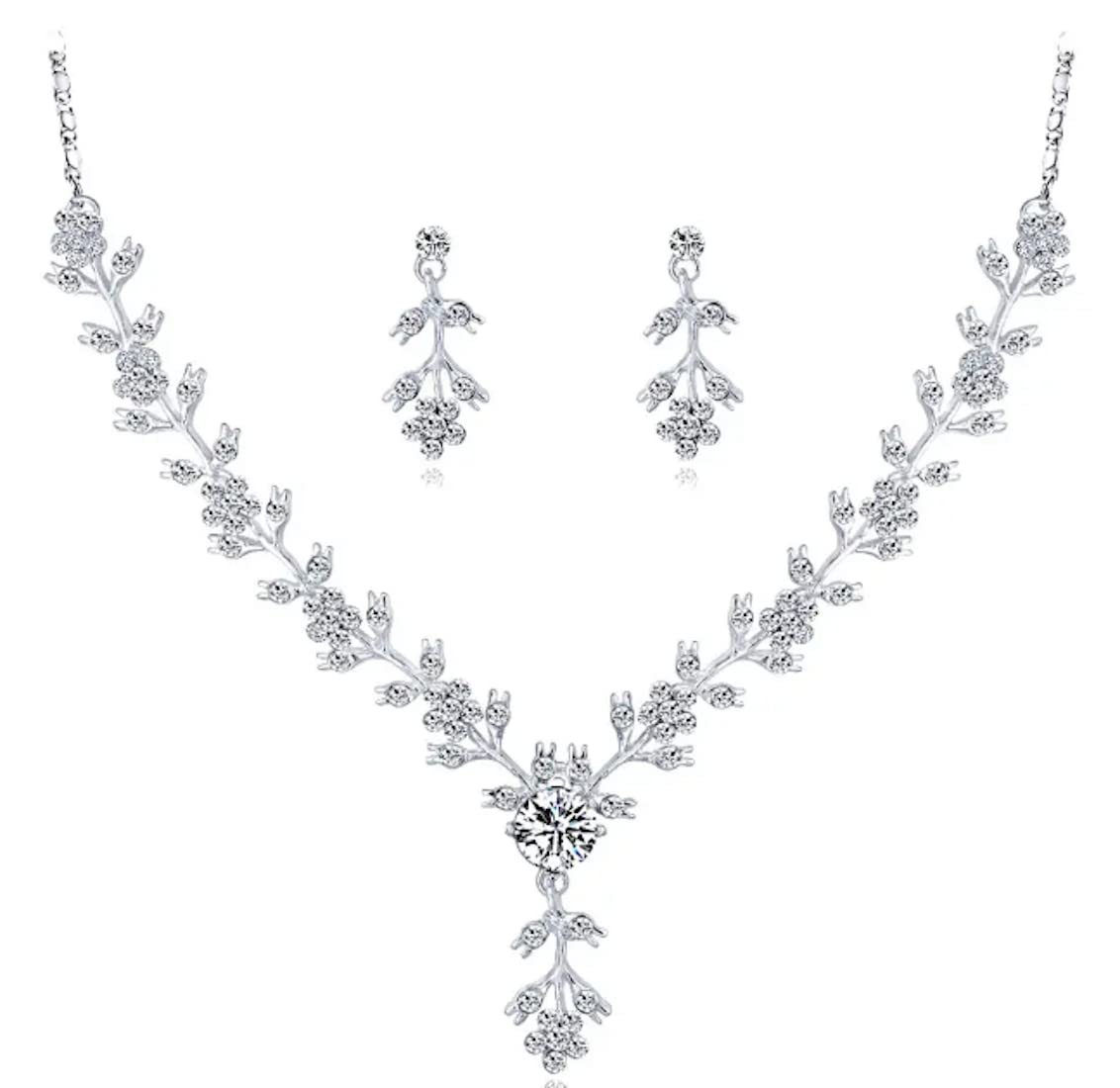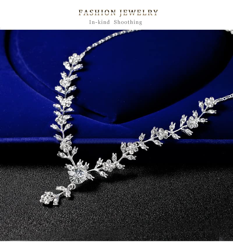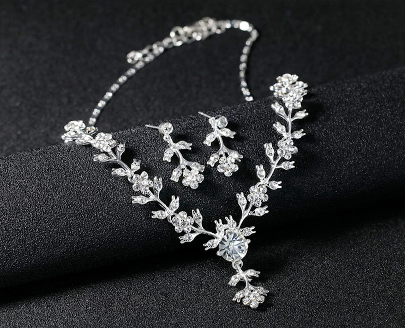 Nilu's Collection Crystal Necklace Jewellery Set with Earrings for Women and Girls Ideal for special event Wedding and Festivals