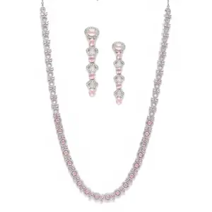 ZENEME Rhodium-ColorSilver Toned Oval...