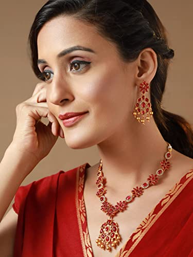 Priyaasi Floral k Studded Golden ColorJewellery Set