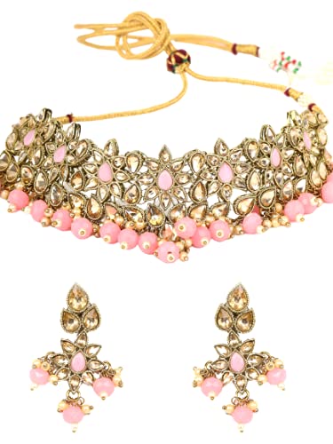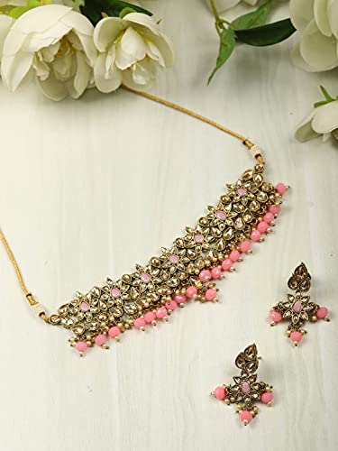 Priyaasi k Pearls Kundan Golden ColorFloral Choker Set
