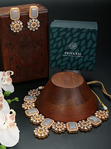 Priyaasi Women’s Grey Stones Kundan Golden ColorChoker Set