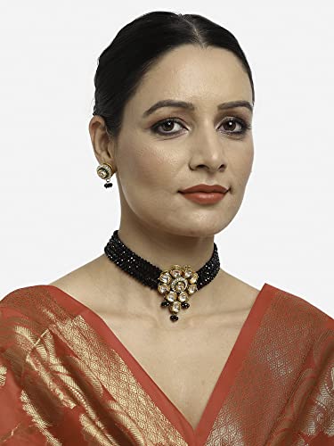 Ruby Raang Women's Mixed Metal Artificial Kundan Jewellery - Traditional Jewellery Set for Women (Black)