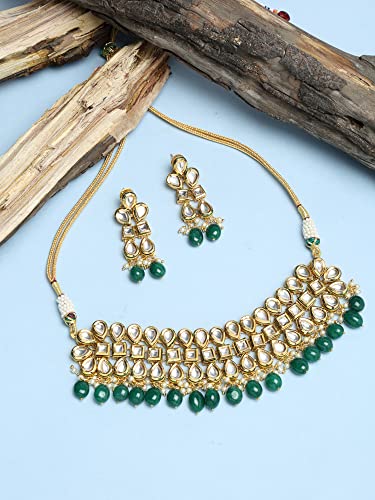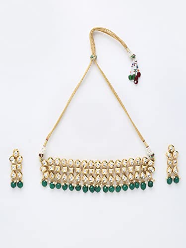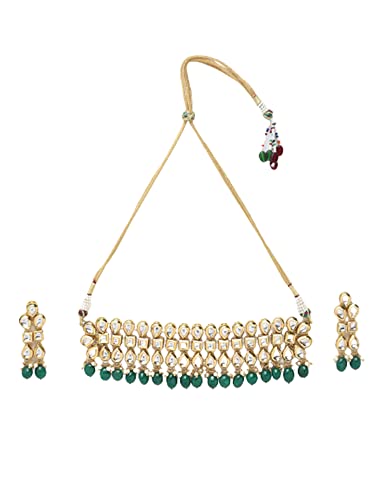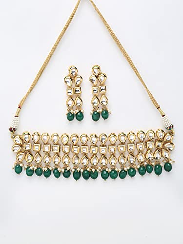 Ruby Raang Women's Mixed Metal Artificial Kundan Jewellery - Traditional Jewellery Set for Women (Green)