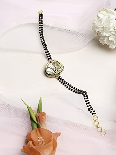 Ruby Raang Women's Mixed Metal Artificial Kundan manra - Traditional Jewellery Set for Women (Black)
