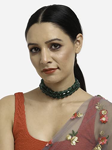 Ruby Raang Women's Mixed Metal Artificial Kundan Necklaces - Traditional Jewellery Set for Women (Green)