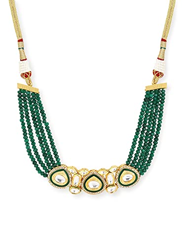 Ruby Raang Women's Mixed Metal Artificial Kundan Necklaces - Traditional Jewellery Set for Women (Green)