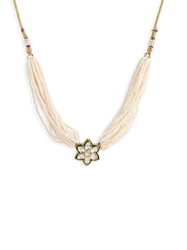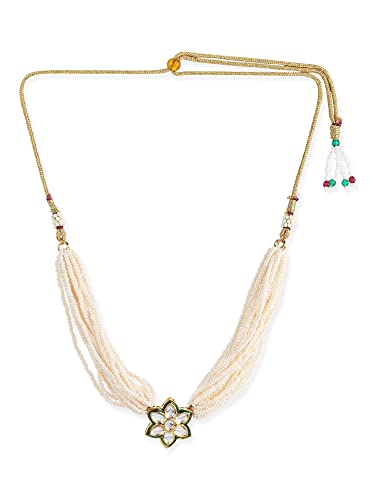 Ruby Raang Women's Mixed Metal Artificial Kundan Necklaces - Traditional Jewellery Set for Women (White)