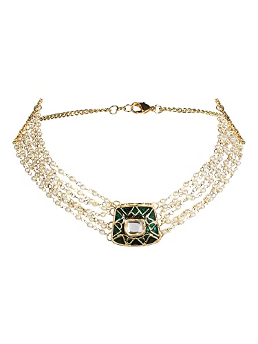 Ruby Raang Women's Mixed Metal Artificial Kundan Necklaces - Traditional Jewellery Set for Women (White)