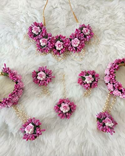 Sanvatsar Home Purple Flower Fabric Handmade Jewellery for Haldi Shower Mehndi Godbharai Set For Women/Girls. Floral Jewellery Set Jewellery Gift