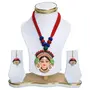 Maa Durga Necklace set.The product in display is made from terracotta material and is finished in an attractive black color. Furthermore this product features a strand shape and a design that renders it with the versatility to be worn as a festive occasion wear