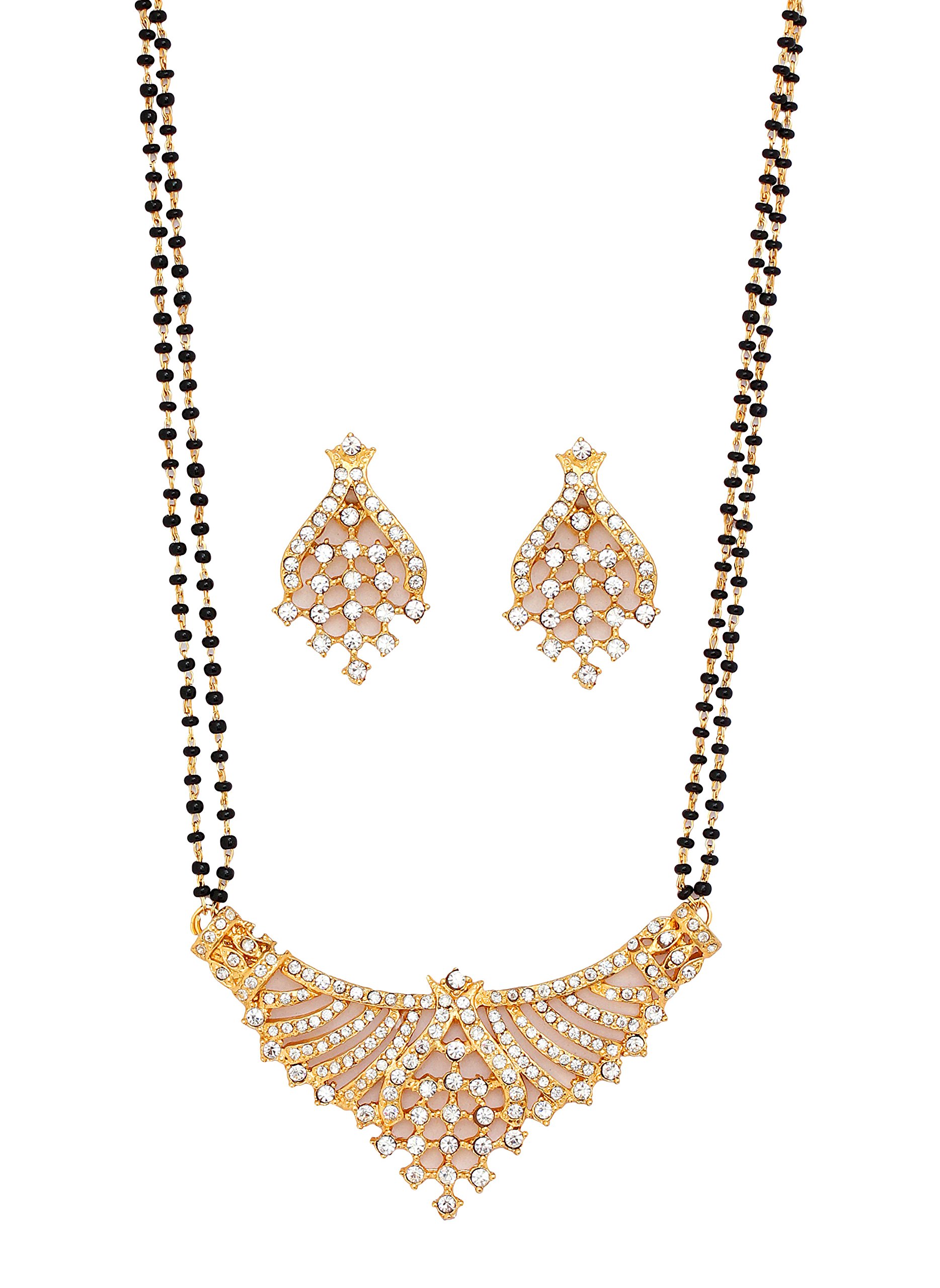 Touchstone Gold Plated Indian Bollywood Trendy Rhinestones Studded Black Beads String Mangalsutra Set Designer Jewelry for Women