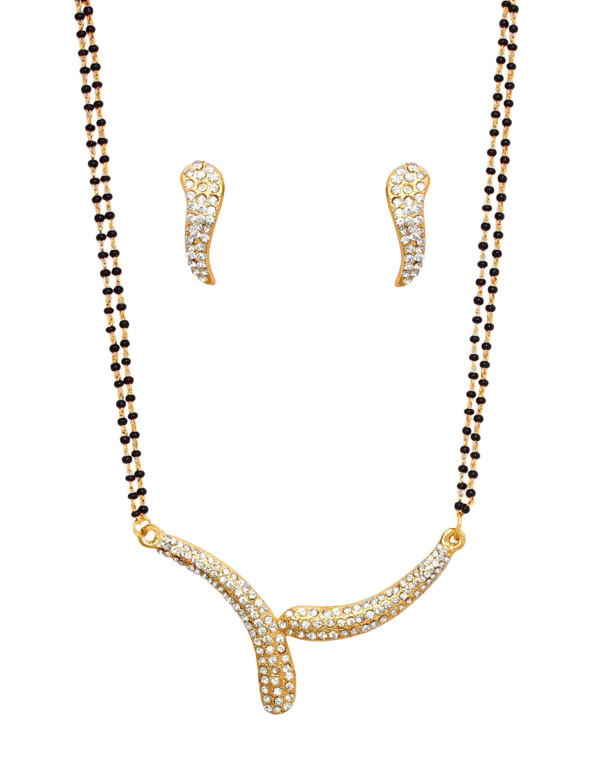 Touchstone Gold Plated Indian Bollywood Trendy Rhinestones Studded Black Beads String Mangalsutra Set Designer Jewelry for Women