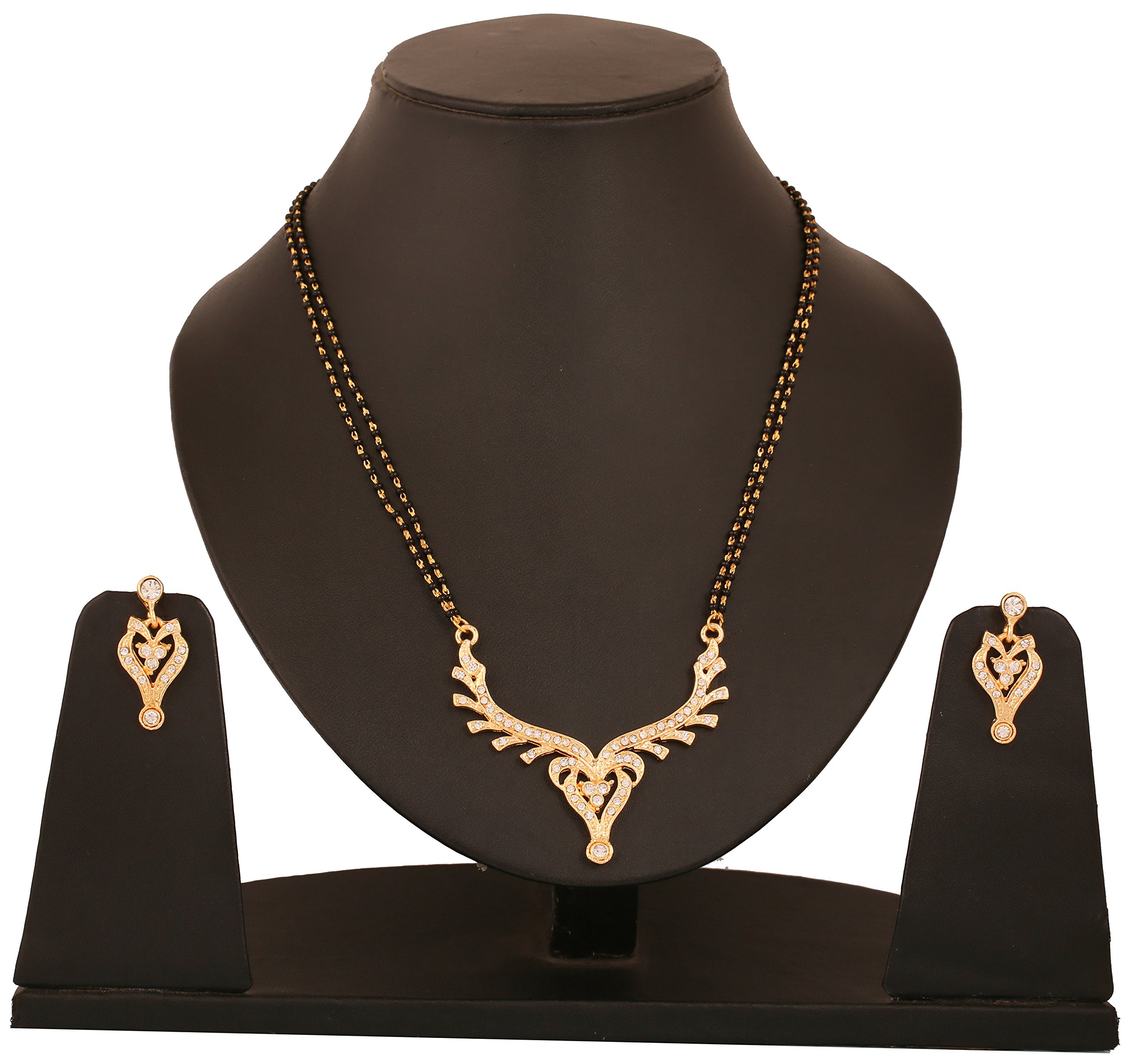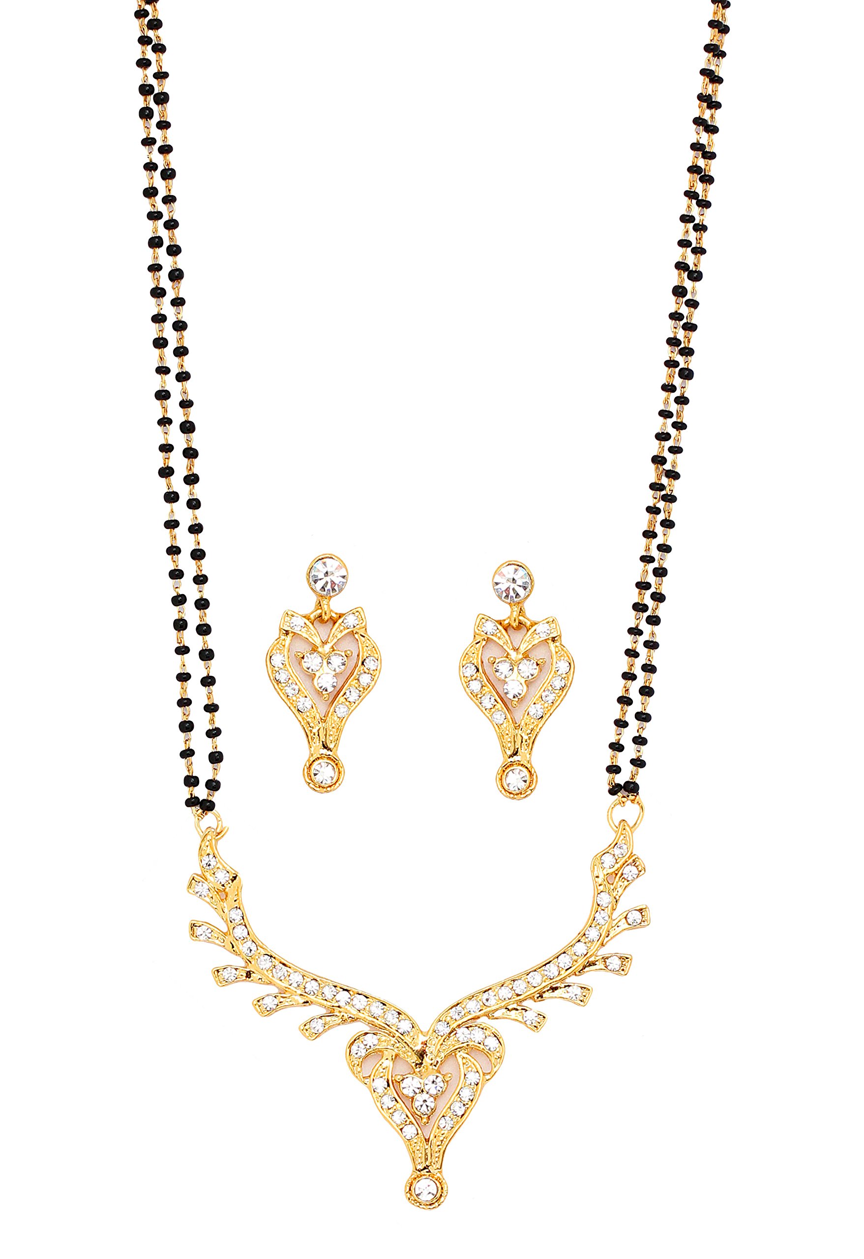Touchstone Gold Plated Indian Bollywood Trendy Rhinestones Studded Black Beads String Mangalsutra Set Designer Jewelry for Women