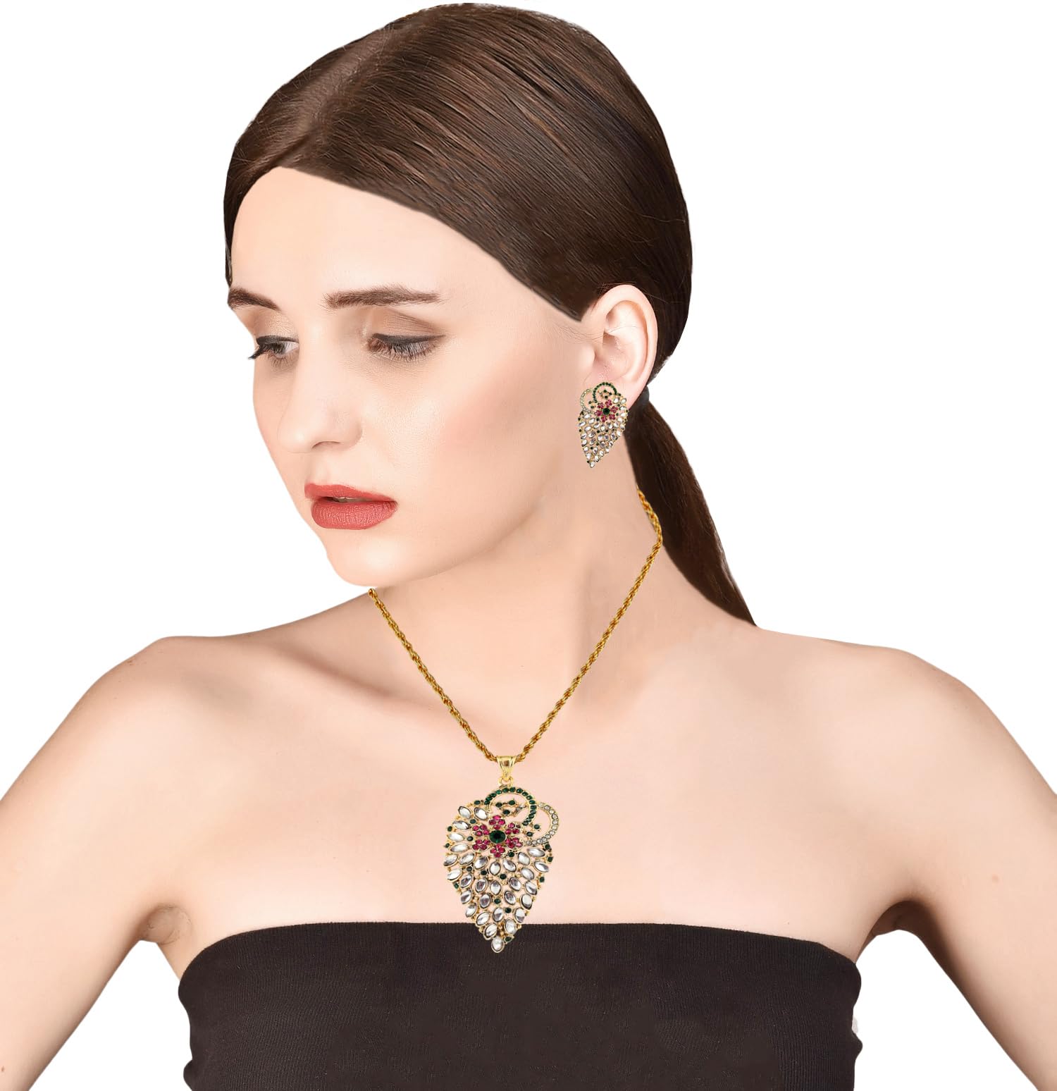 Touchstone Gold Tone Kundan Look Red Strawberry Shaped Jewelry Pendant for Women