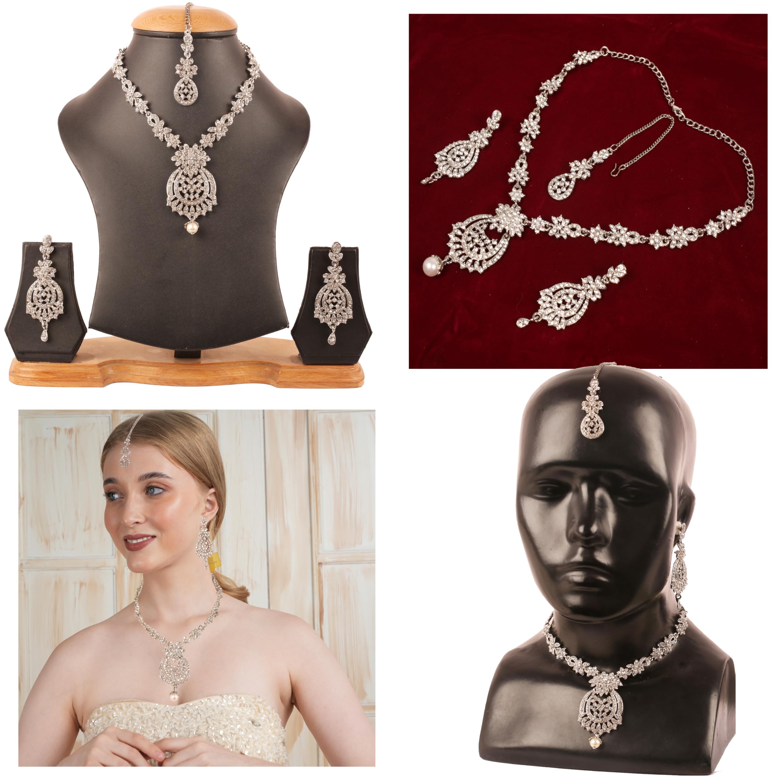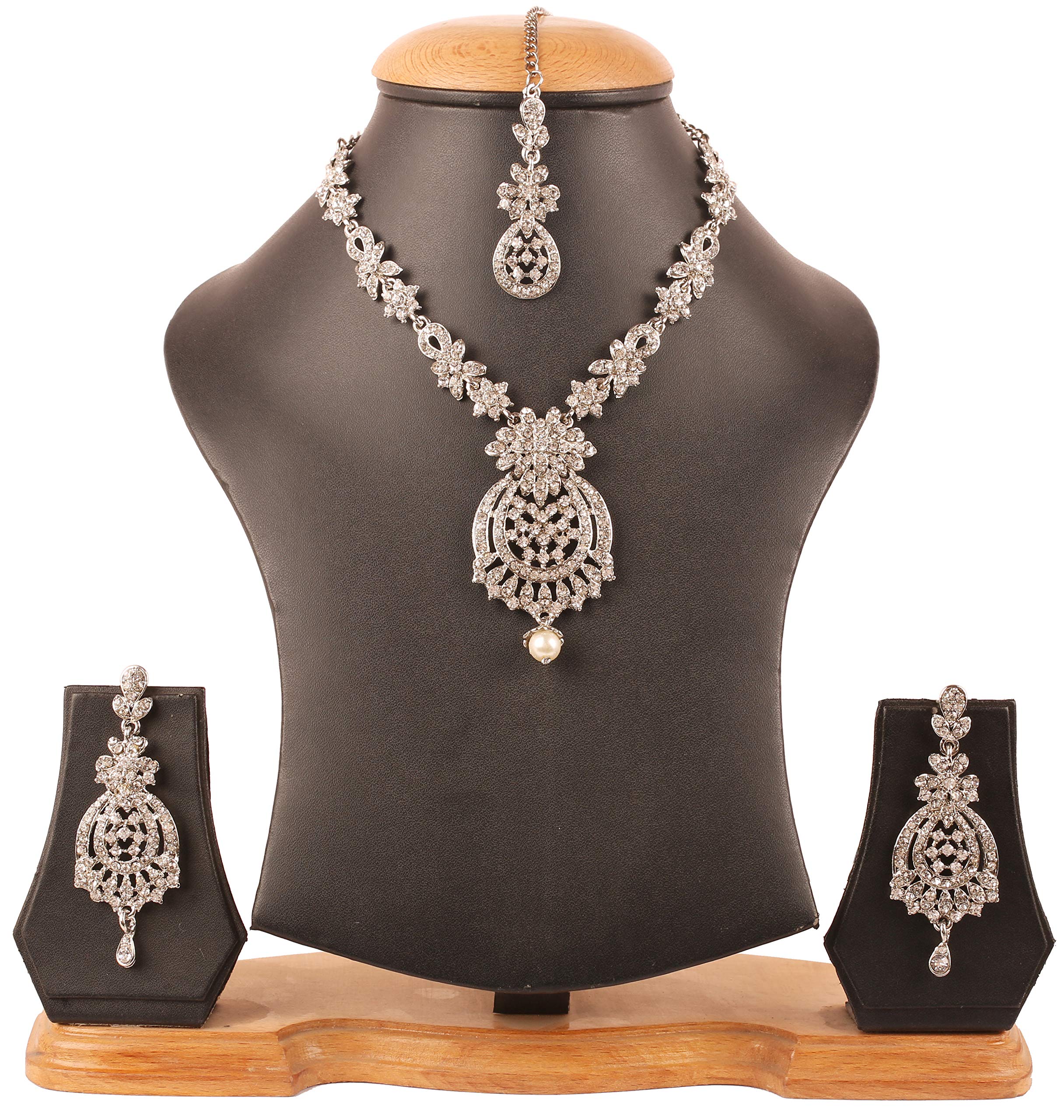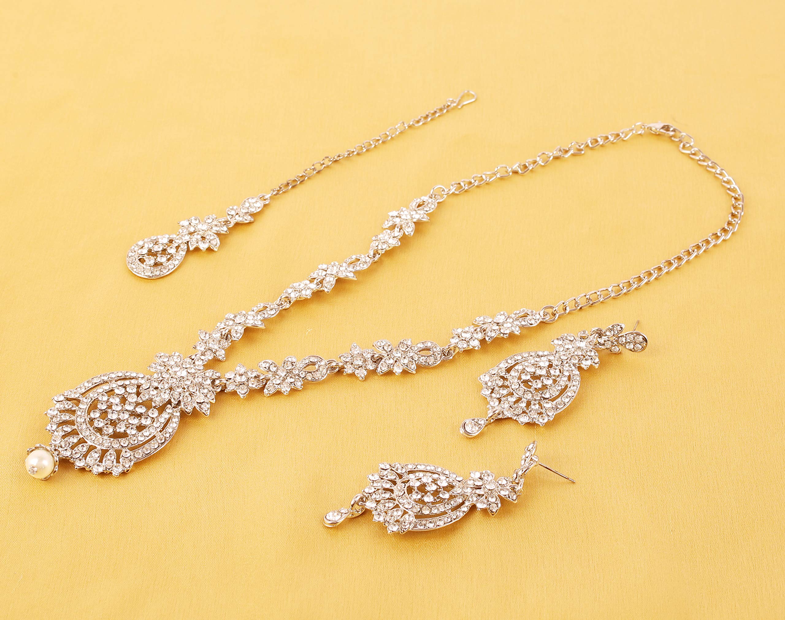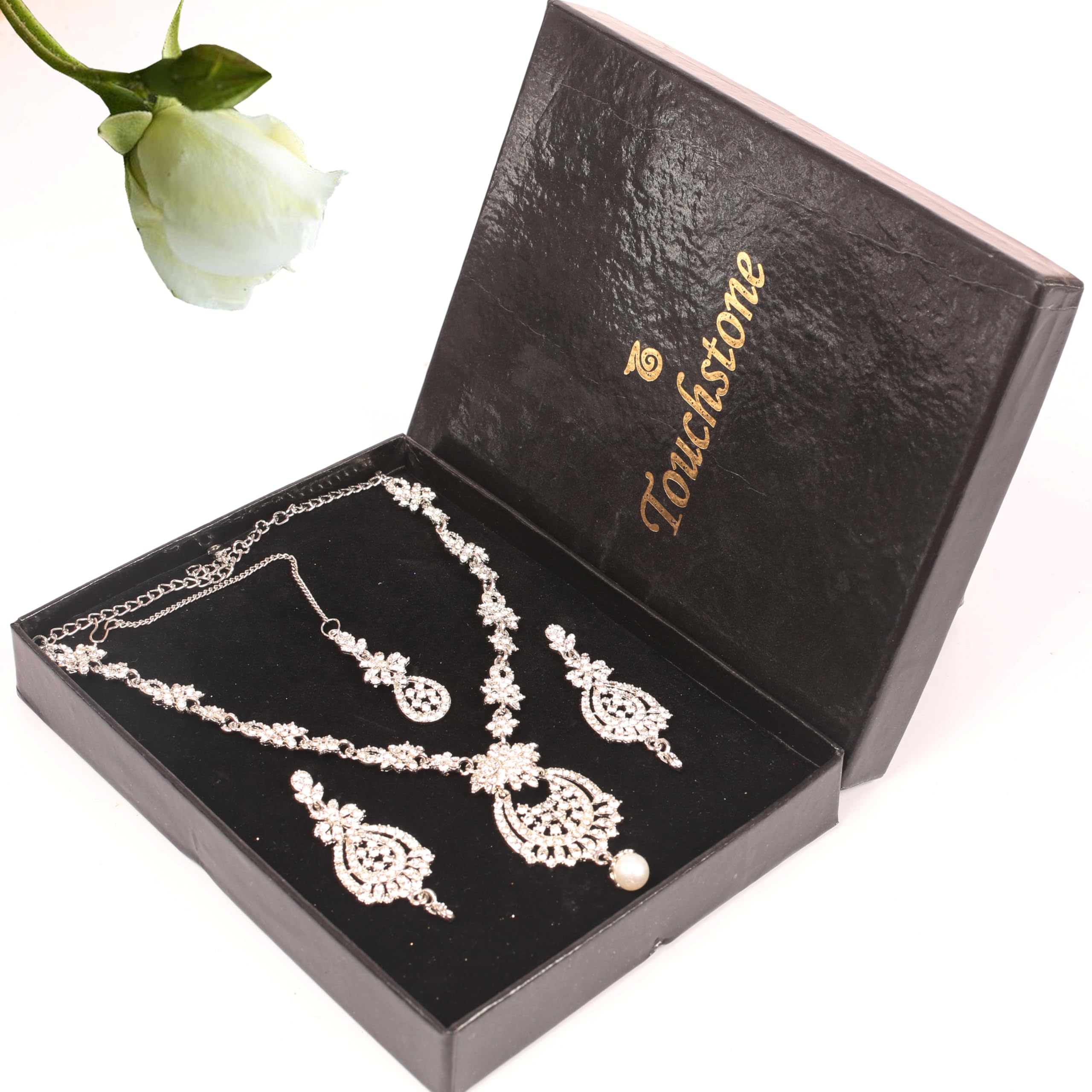 Touchstone Indian Bollywood Rhinestones Bridal Jewelry Necklace Set for Women