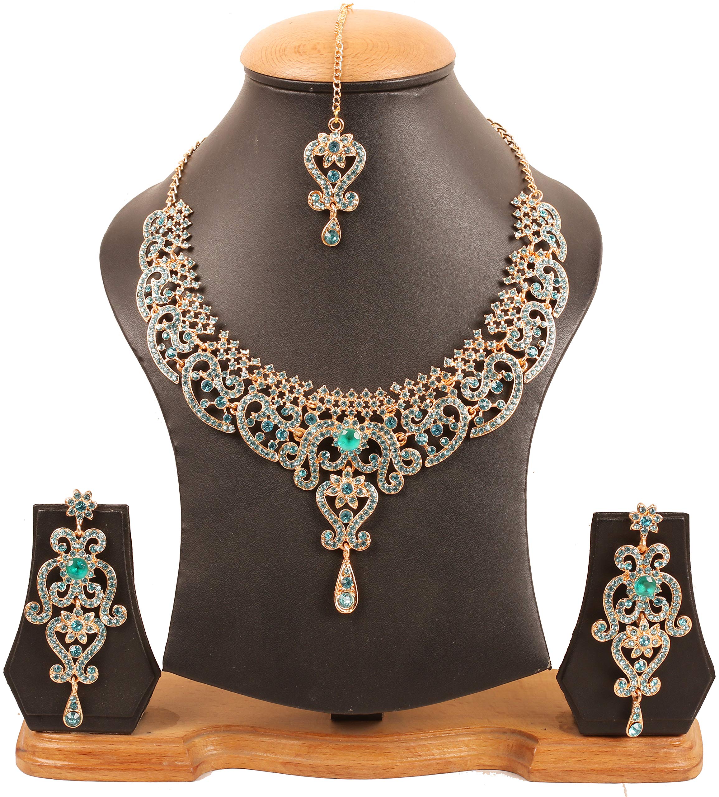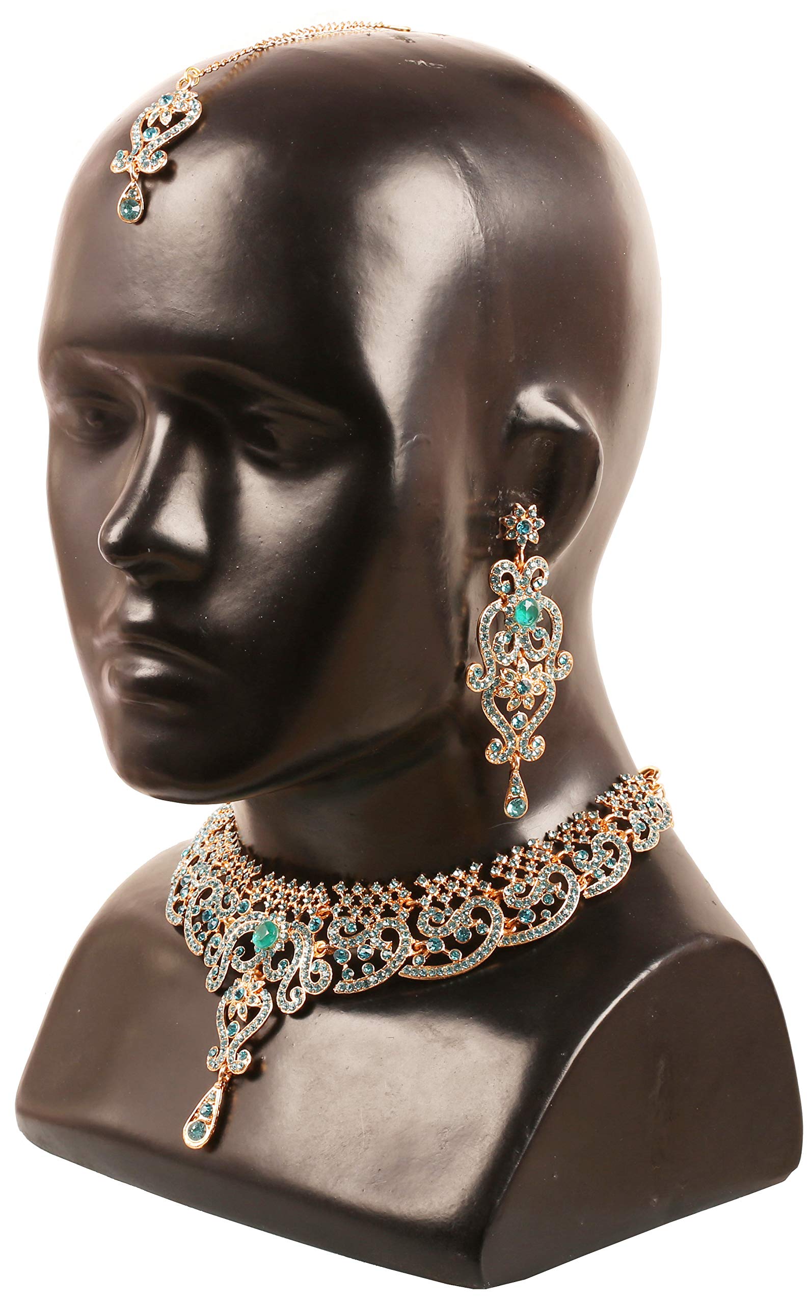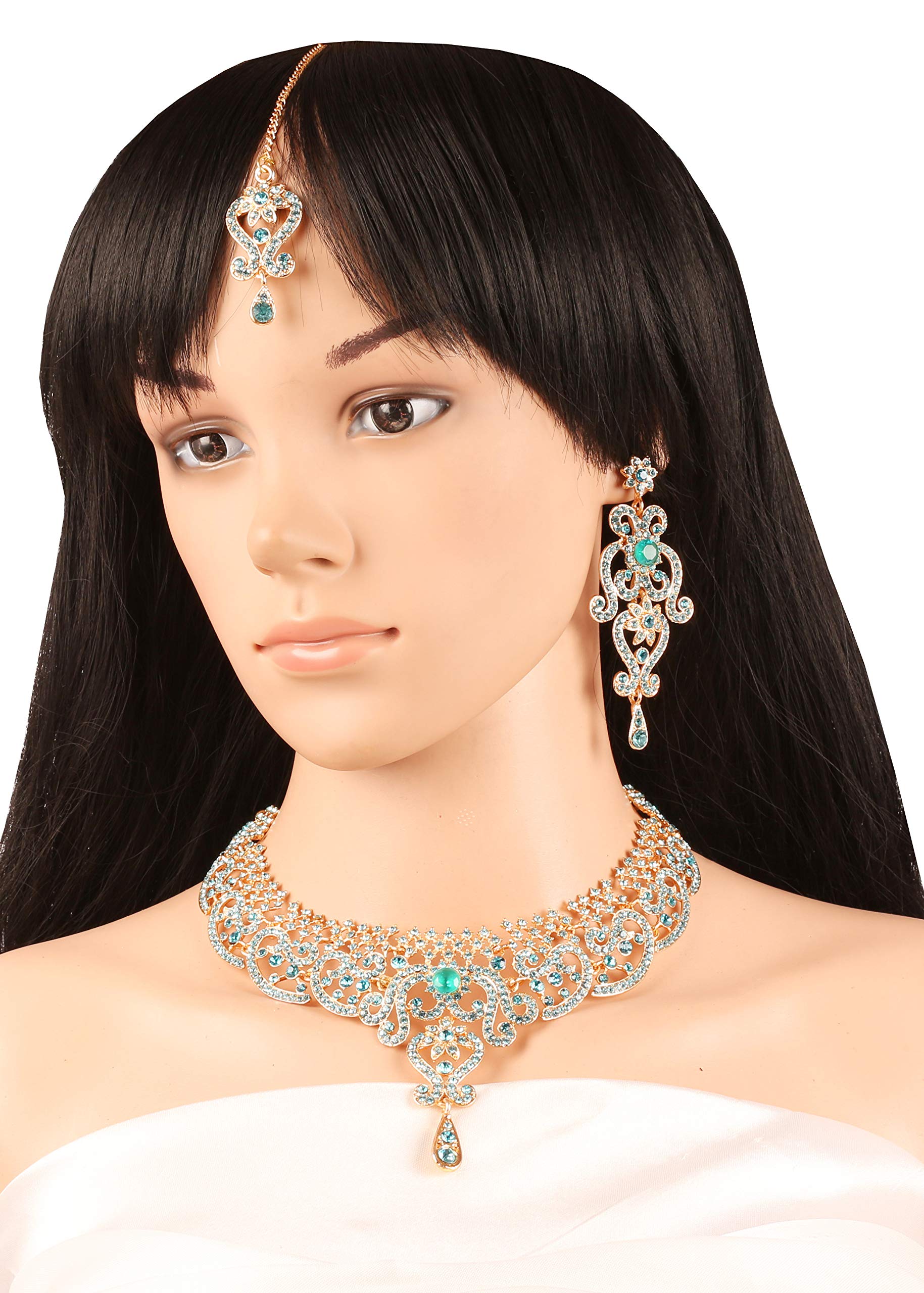 Touchstone Indian Bollywood Royal Look Marvelous Designer Jewelry Necklace Set Embellished with Crystals for Women