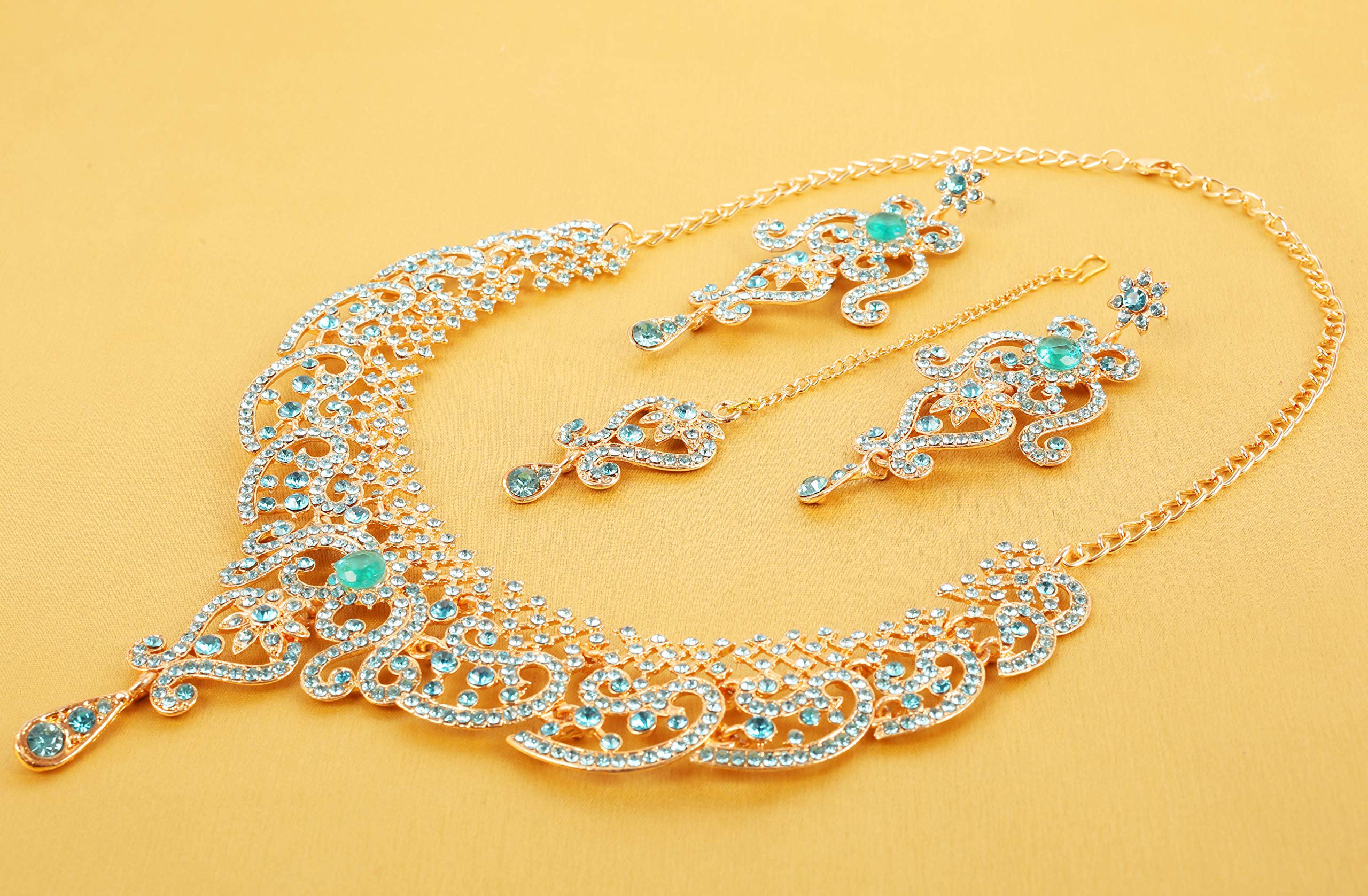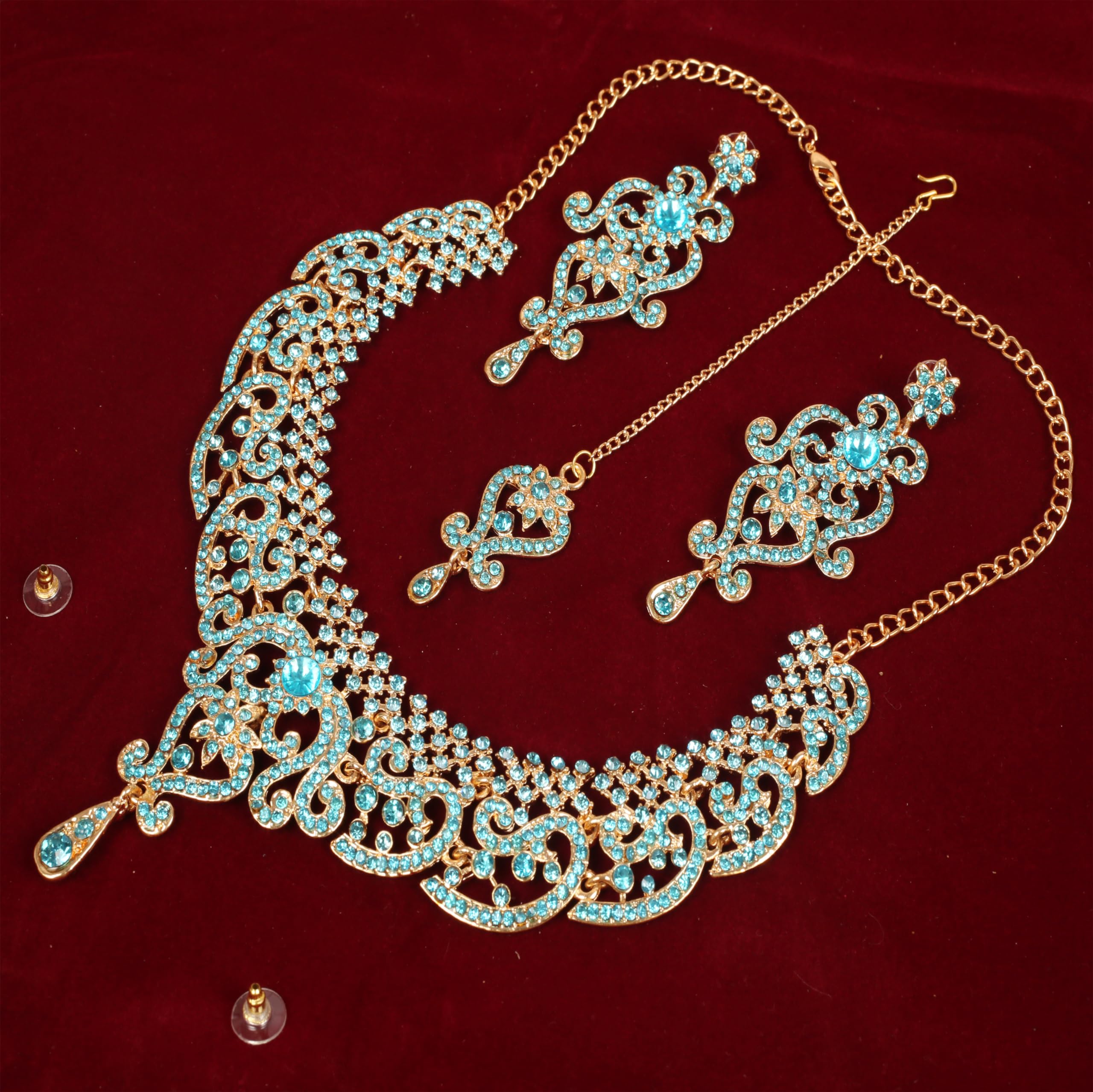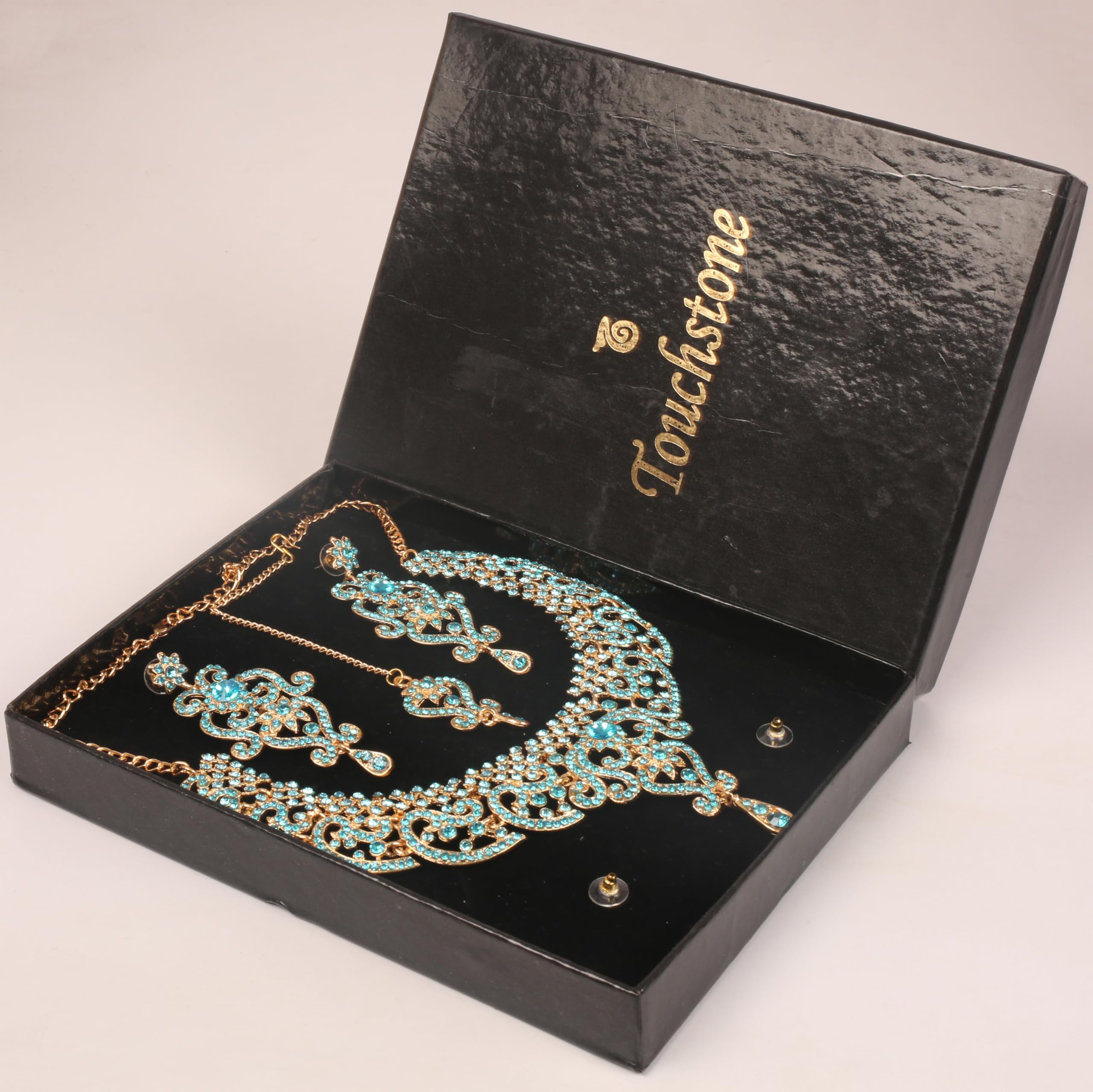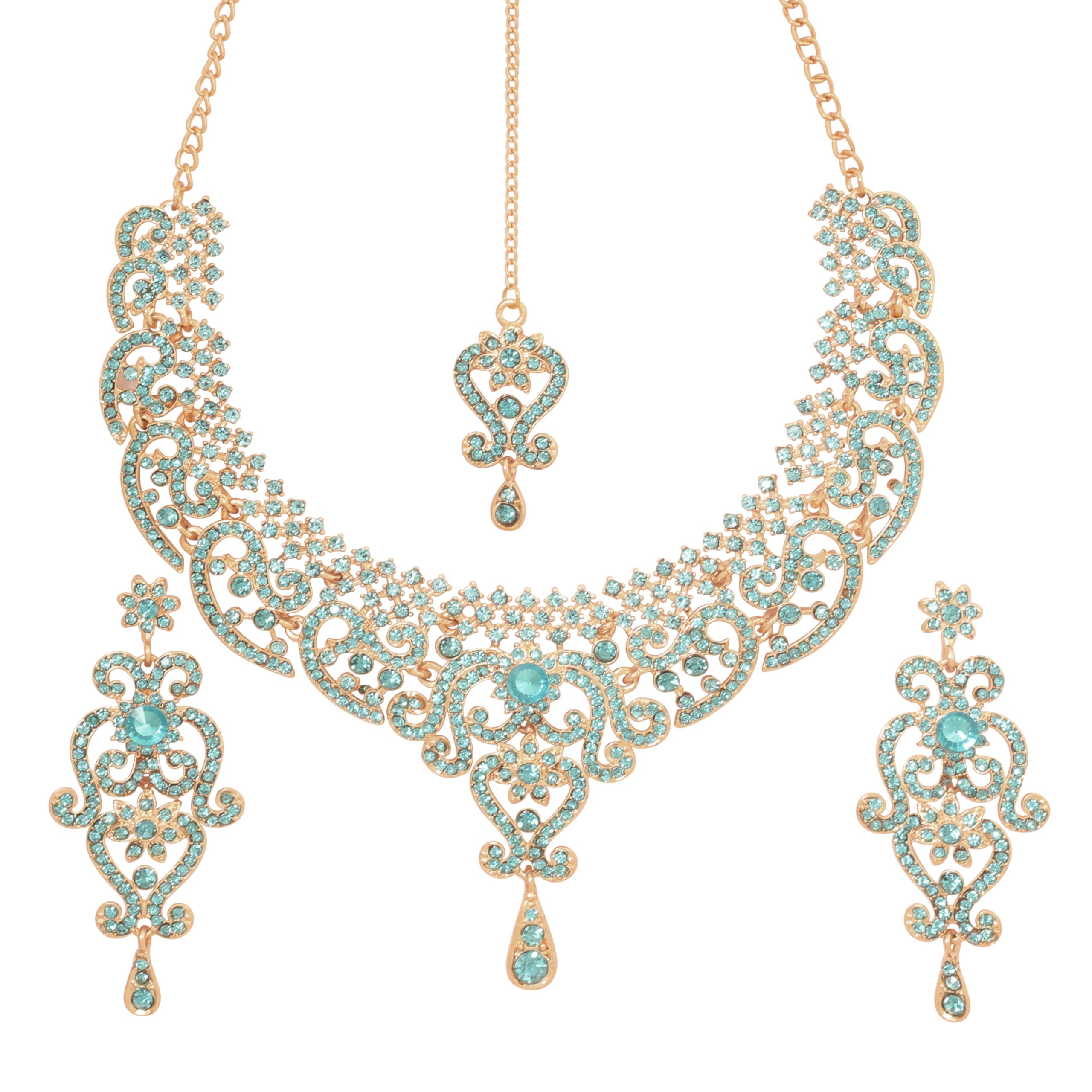 Touchstone Indian Bollywood Royal Look Marvelous Designer Jewelry Necklace Set Embellished with Crystals for Women