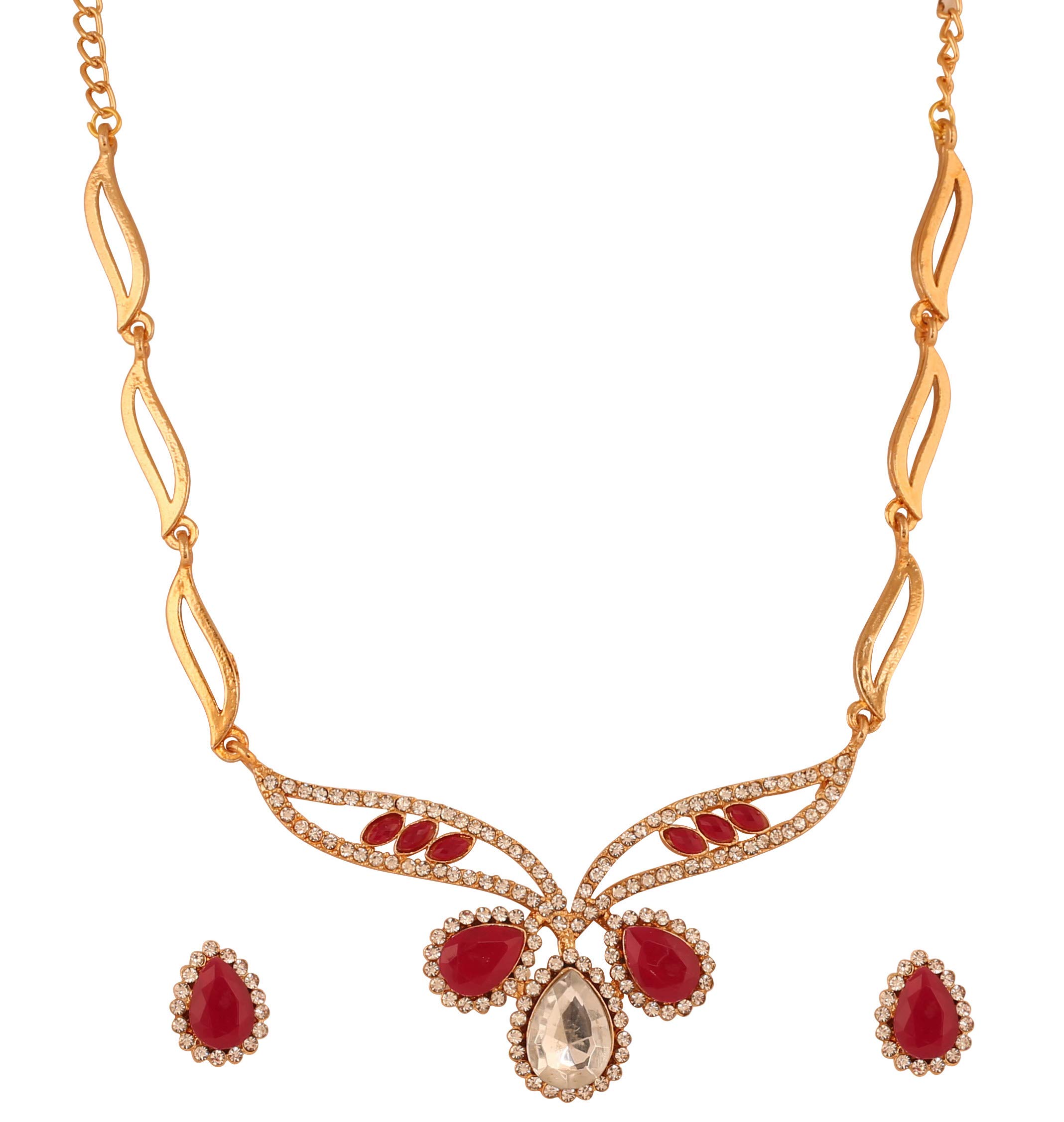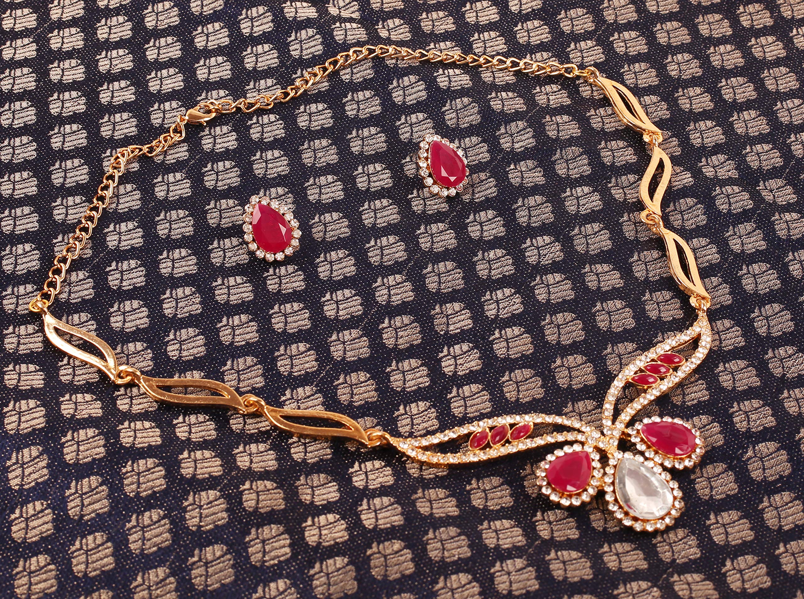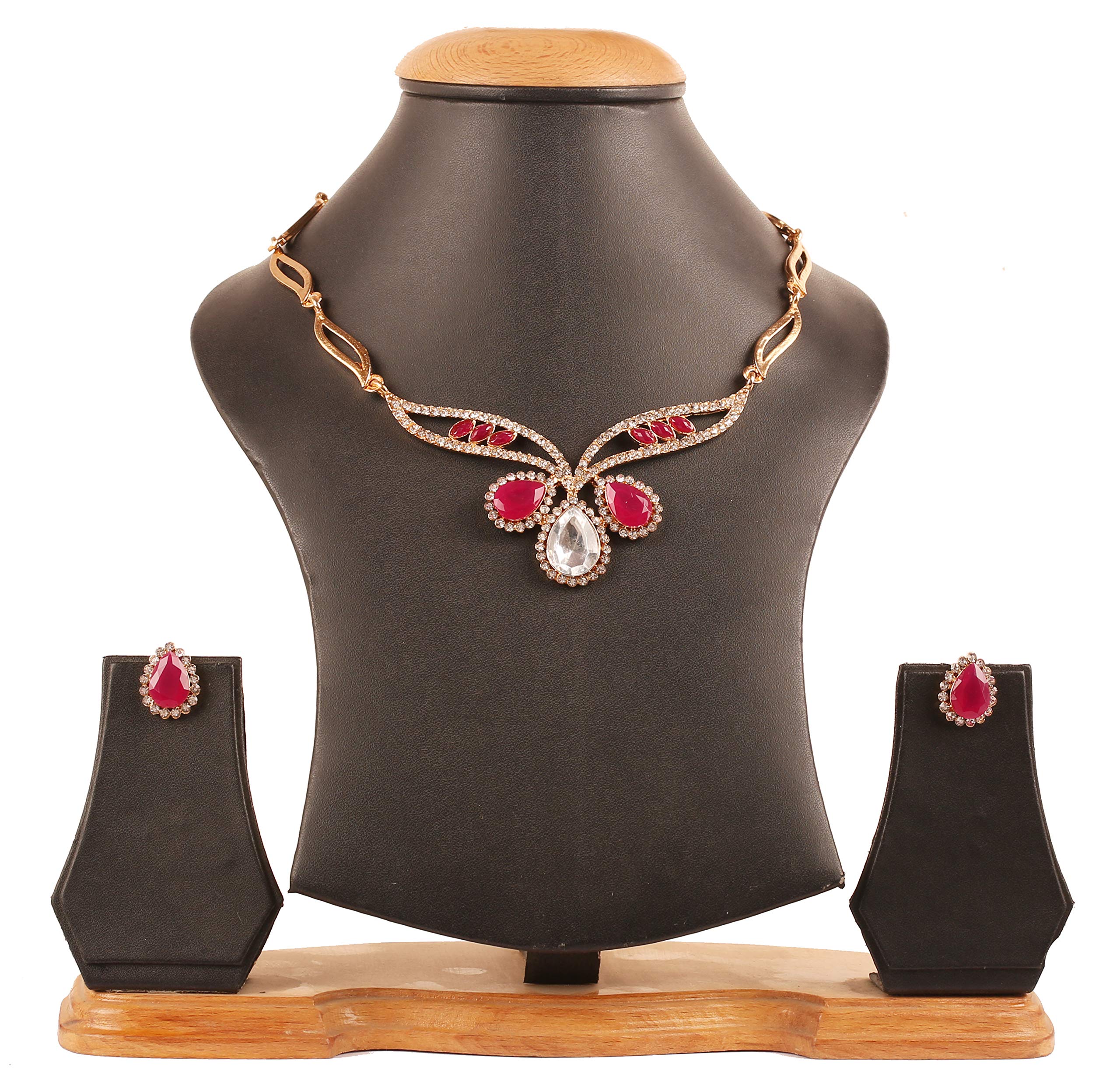 Touchstone Traditional Petals White Rhinestone Faux Ruby Designer Jewellery Necklace Set in Gold Tone for Women