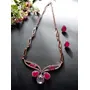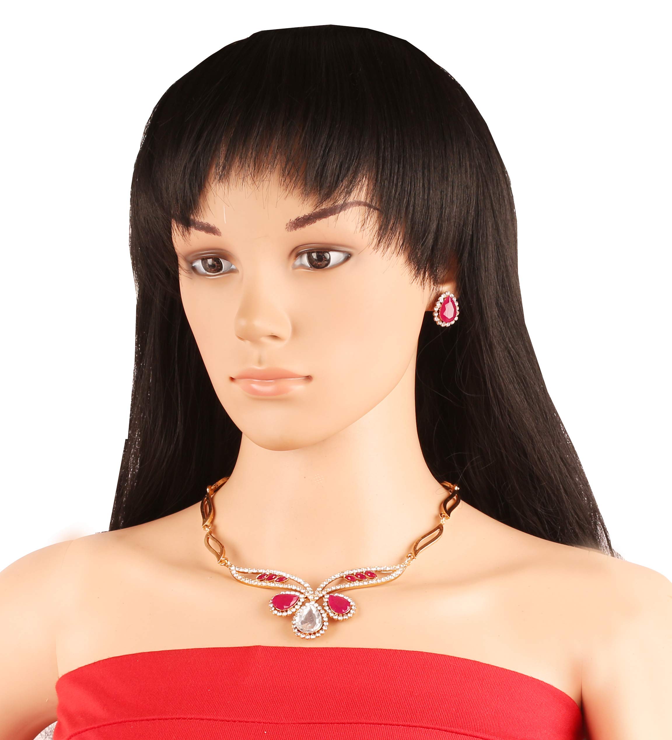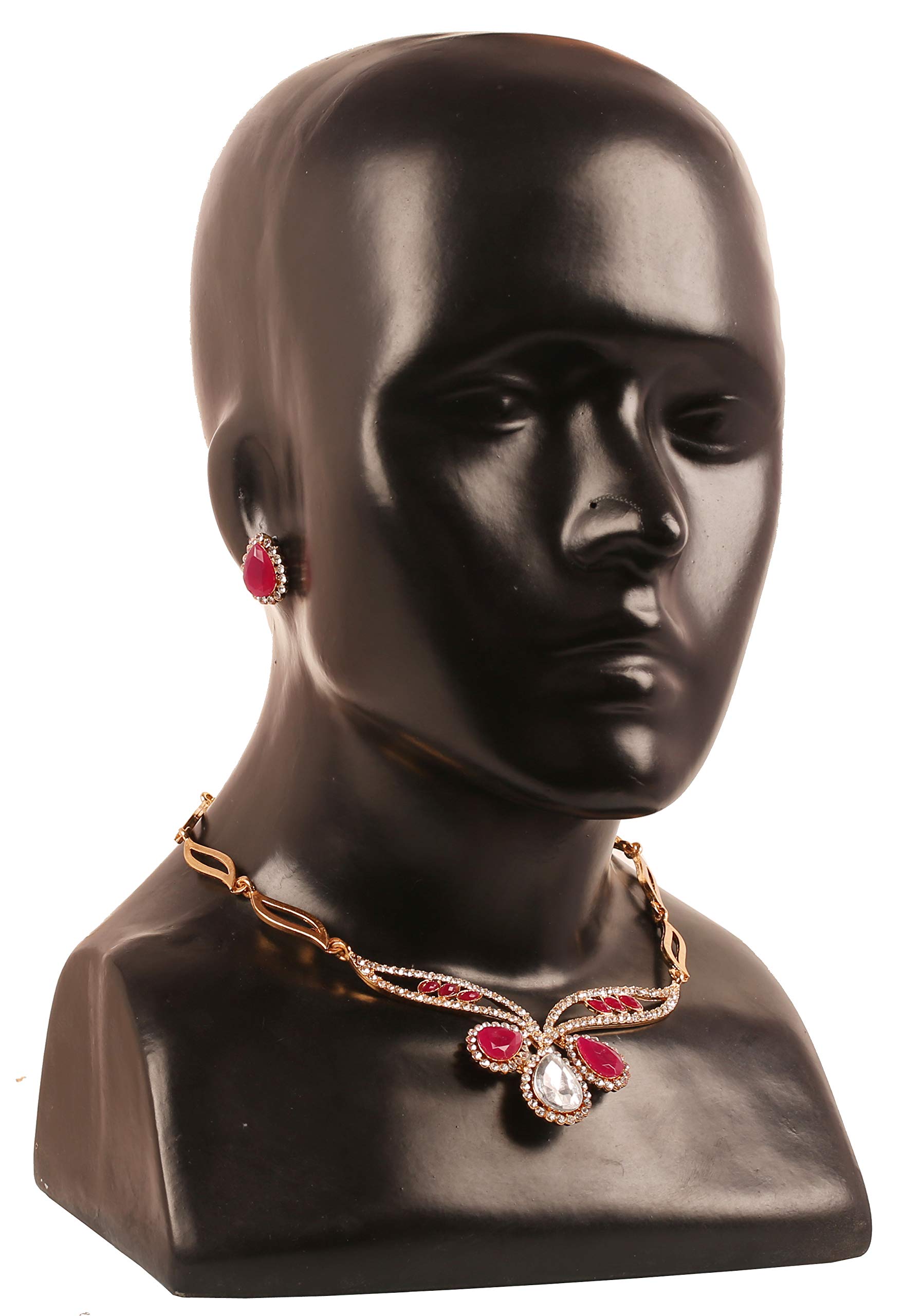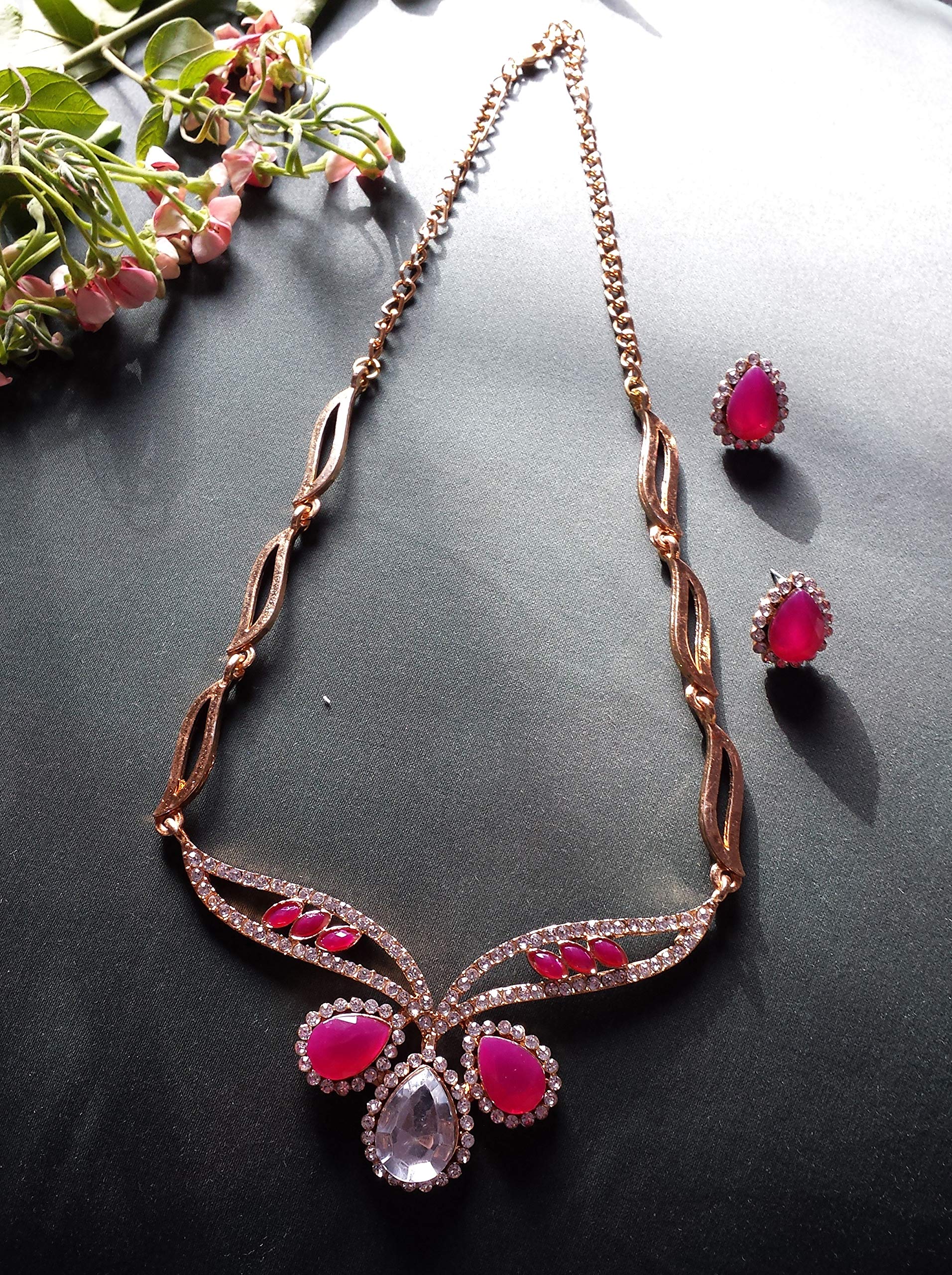 Touchstone Traditional Petals White Rhinestone Faux Ruby Designer Jewellery Necklace Set in Gold Tone for Women