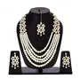 What You Get: Total 4 Items. 1 gorgeous looking white-colour Kundan-based long necklace 1 Pair Of Matching & short Earrings 1 Maang Tikka & 1 stylish Choker High-Quality American Diamonds & superior-quality Gold Plating For Long Lasting Finish with Hand Crafted Design For Contemporary Stylish Trendy & Stunning Look. Unique-shaped & matching sets / combos especially offered to our prestigious shoppers.
