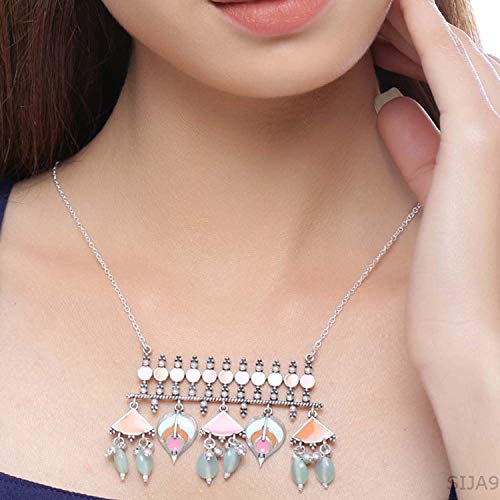 The Gulshan necklace inspired by the dewy flowers of the Sanganeri block printing. Made from brass and silver plated. Pair with a flowy summer dress. This piece of jewelry comes with the Voylla assurance of quality and durability. Caring for your fashion jewelry: We at Voylla take care of every piece of jewelry so that you don't spend hours caring for them. But do remember fashion jewelry lasts longer when kept dry and free of chemicals. Follow this simple rule: Your jewelry should be the last thing you put on and the first thing you take off.