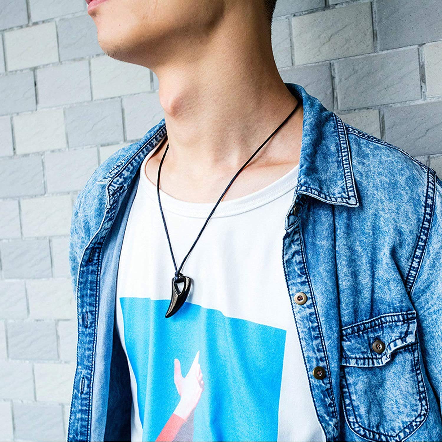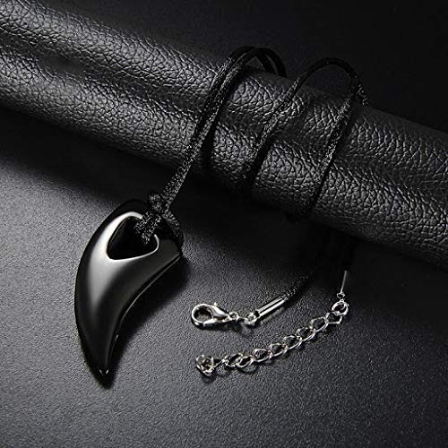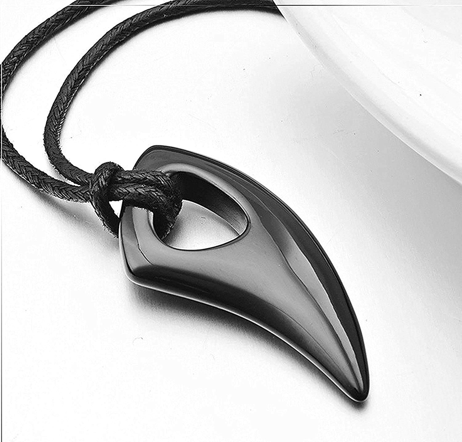 Yellow Chimes Stainless Steel Wolf Tooth Black Leather Rope Pendant for Men and Boys Medium (YCFJPD-SSWOLF-BK)