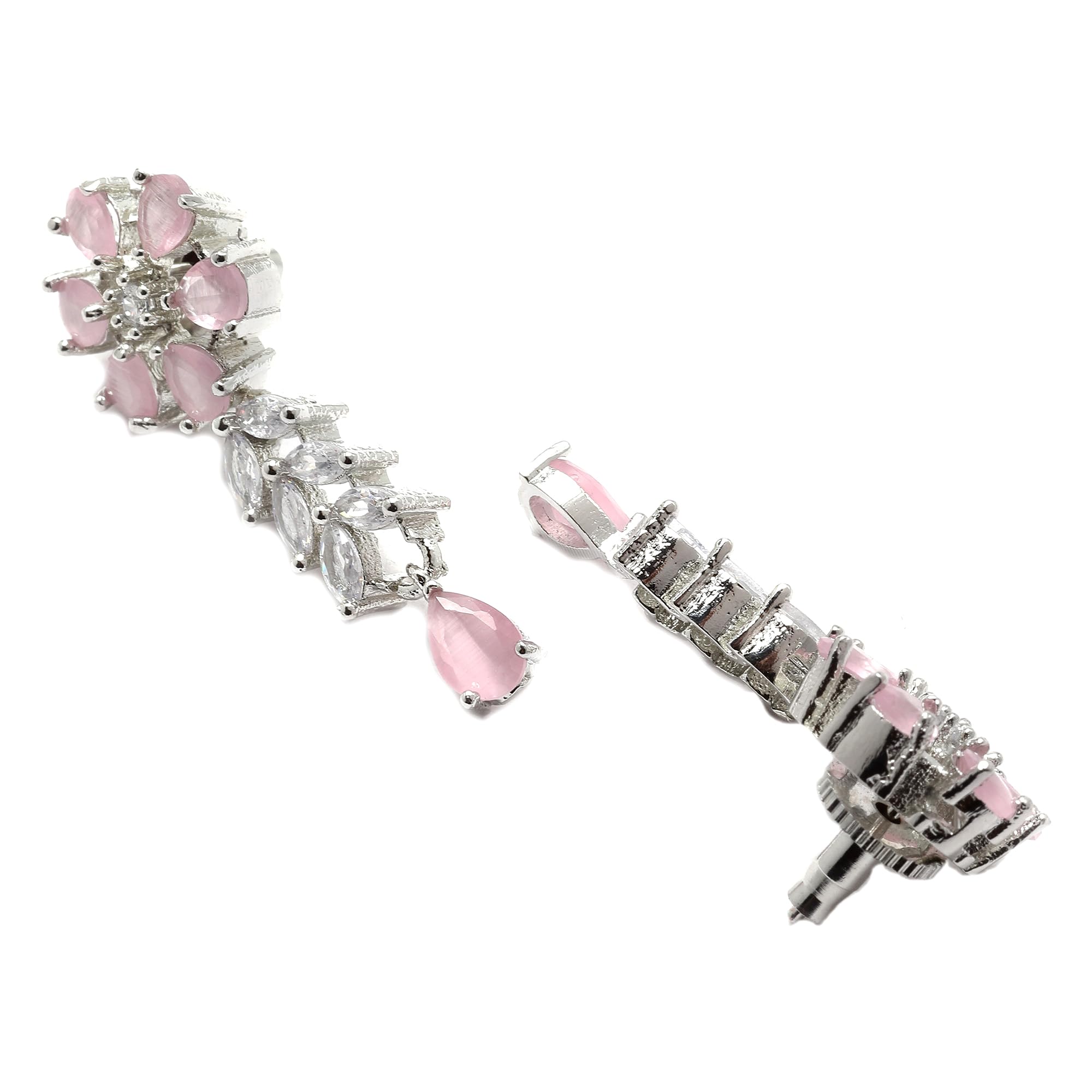 ZENEME Rhodium-Plated Silver Toned Star Shaped American Diamond Studded Necklace Earrings Jewellery Set for Girls and Women