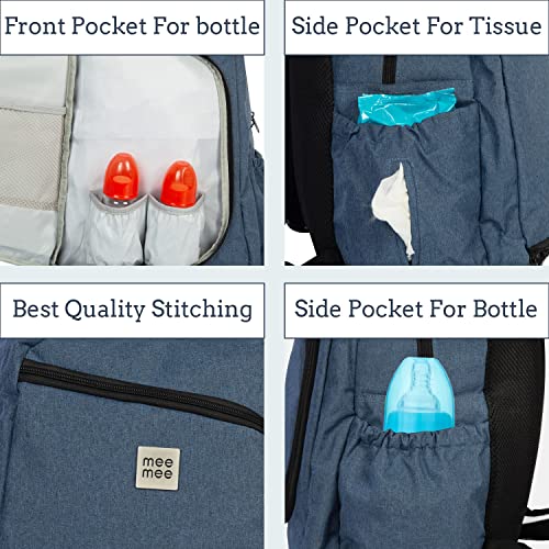 HomeFashionBagsMee Mee Nursing Diapers Bag |Adjustable Strap,Water&Stain Resistant BackPack |Spacious Bag With Multi Pockets for Keeping Milk Bottle With Diaper Changing Mat |All Baby Essentials In1 Bag (Blue)