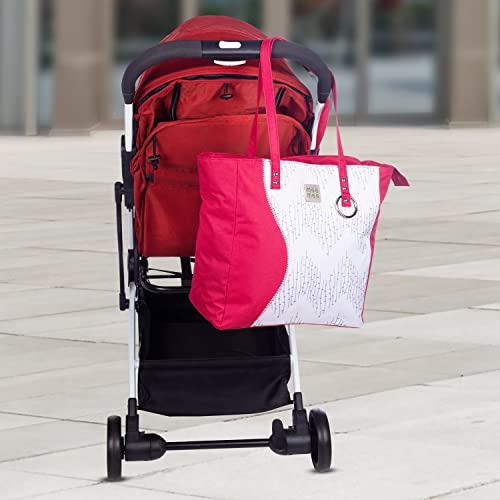 The bag is equipped with an adjustable shoulder strap ensuring a comfortable fit for parents of different heights.